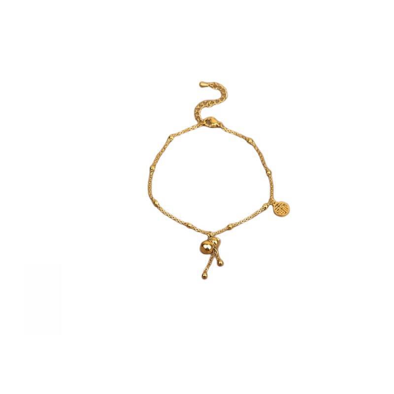 钛钢招财葫芦脚链女新款高级感设计感小众福字饰品轻奢金色足链条