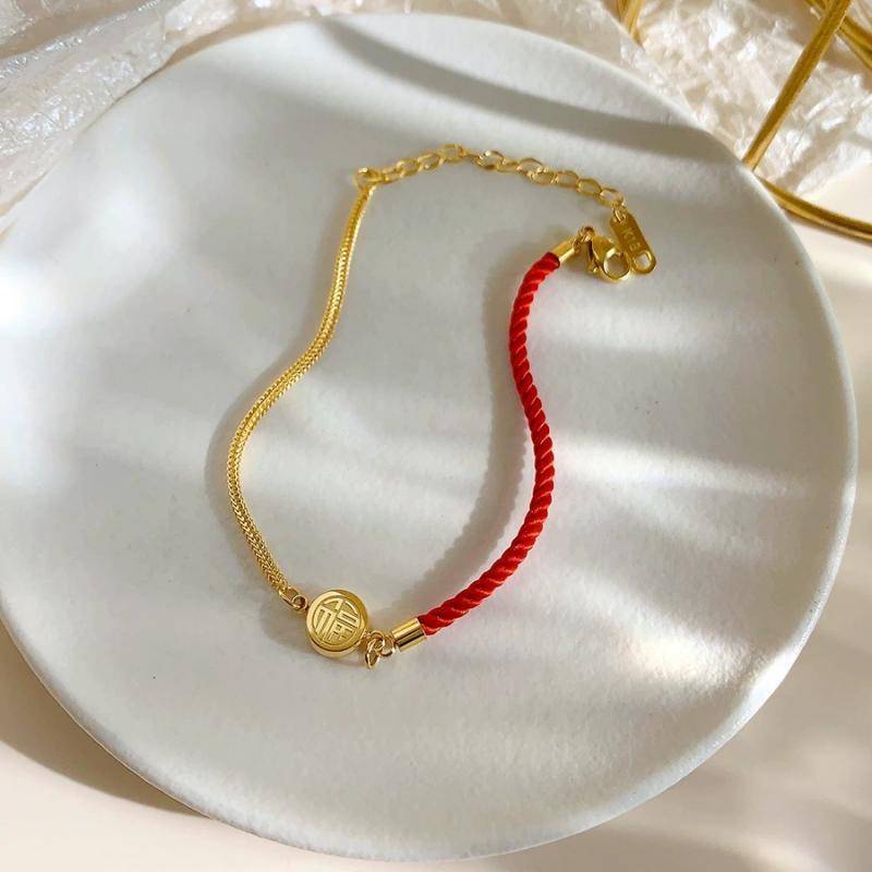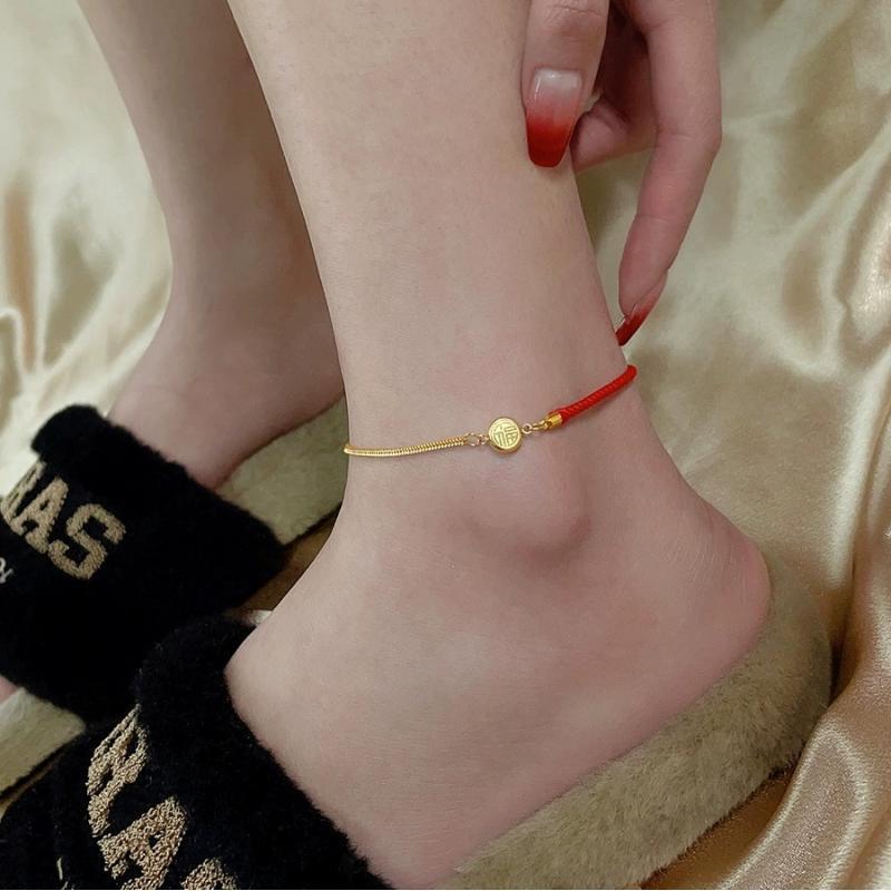 本命年红绳脚链女性感金小福牌幸运高级感女士足链不掉色