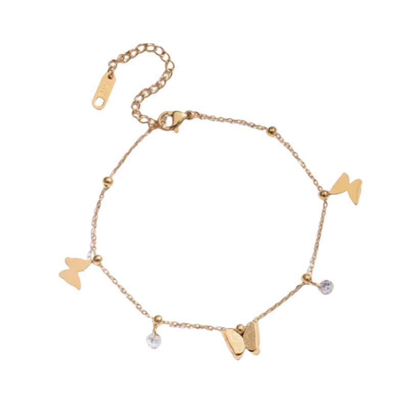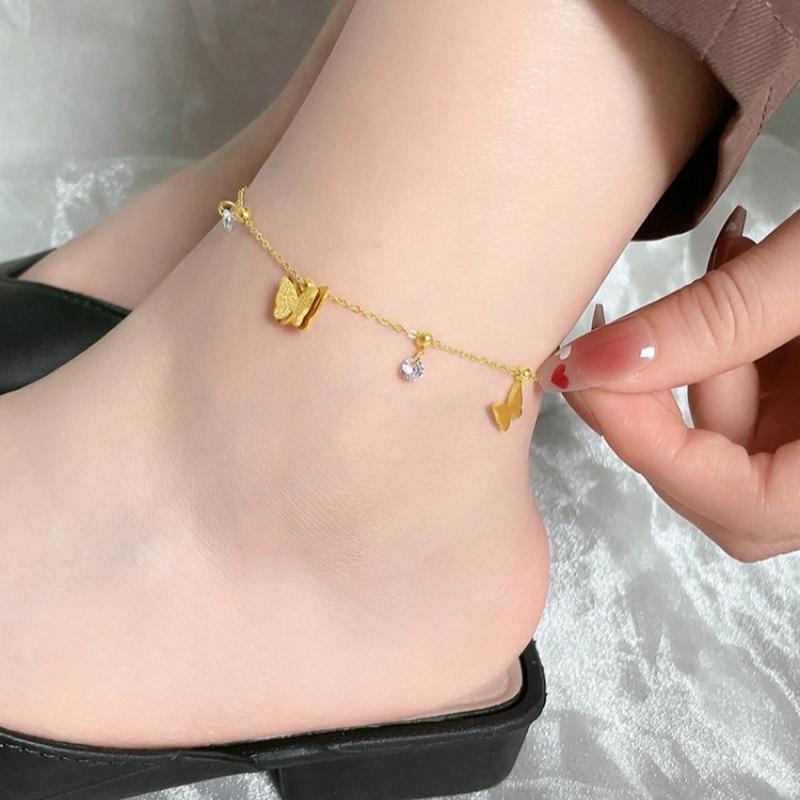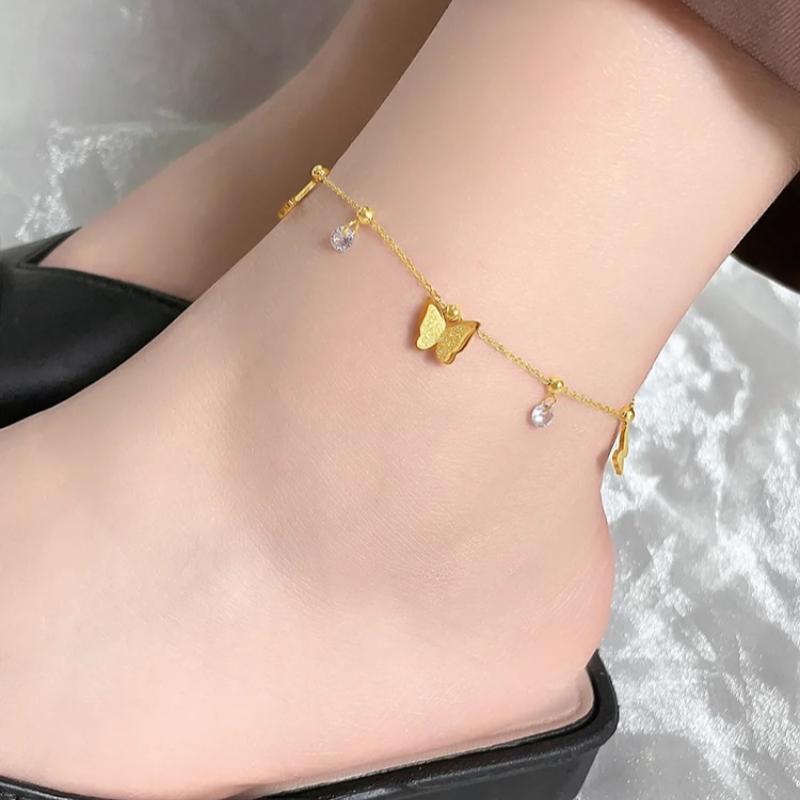 蝴蝶脚链女新款性感钛钢小众锆石足链夏季小众高级感脚踝链