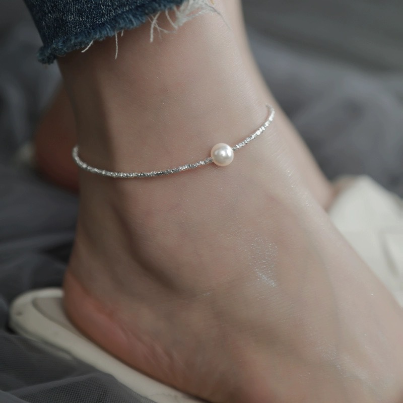 网红森系碎银子珍珠脚链女新款潮轻奢小众感个性足链夏季