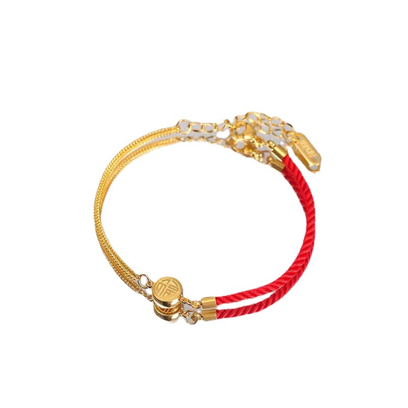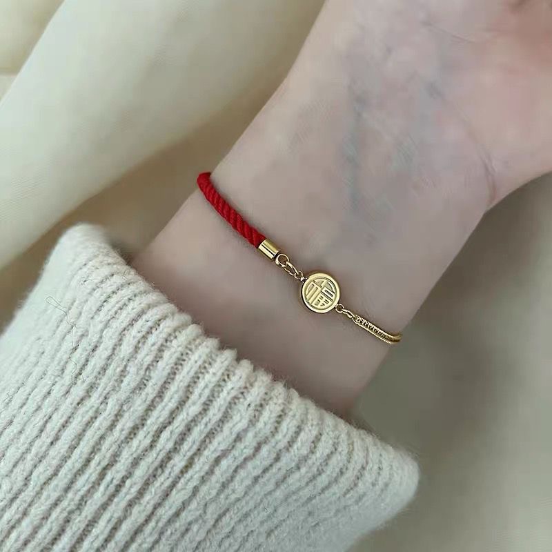 新款钛钢手链福牌红绳手链女轻奢小众设计精致编织简约百搭配饰潮