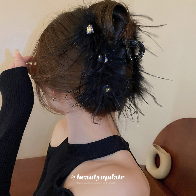 镶钻爱心羽毛抓夹小众超仙后脑勺盘发鲨鱼夹气质轻奢高级感发饰女
