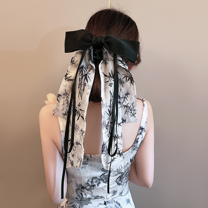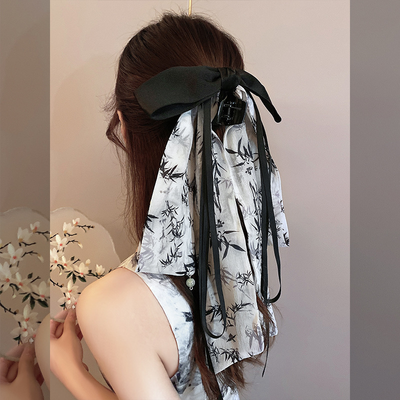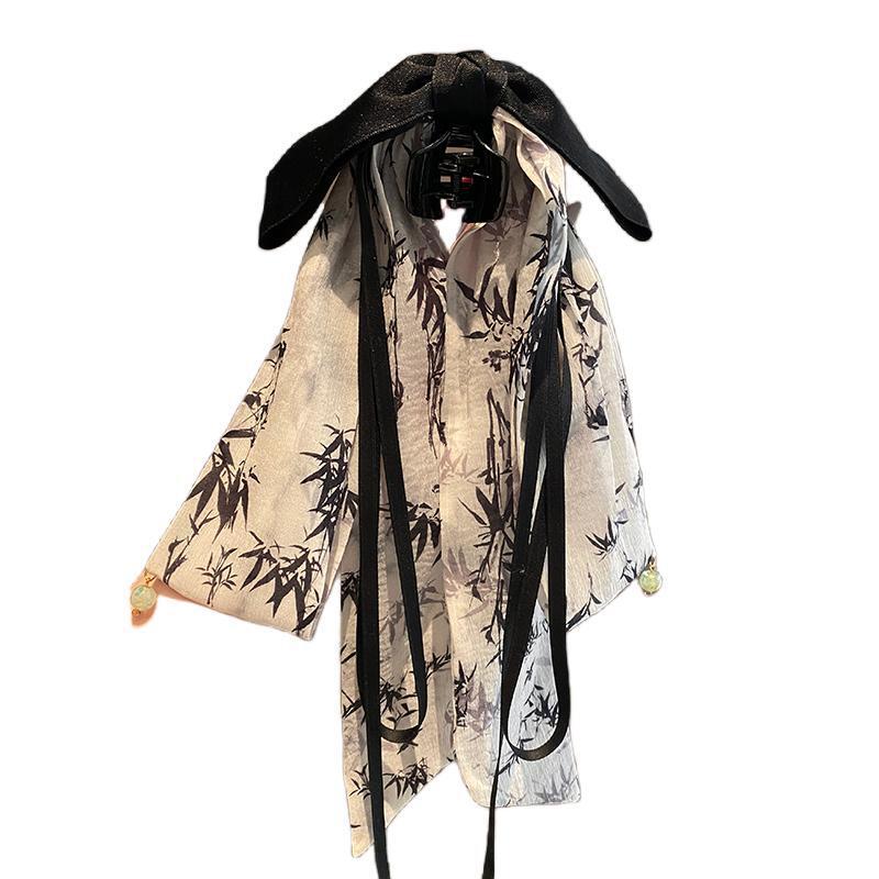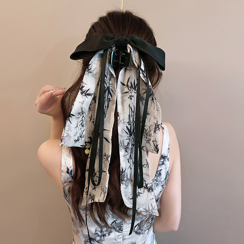 新中式水墨国风飘带蝴蝶结抓夹高级感鲨鱼夹半扎发后脑勺发夹发饰