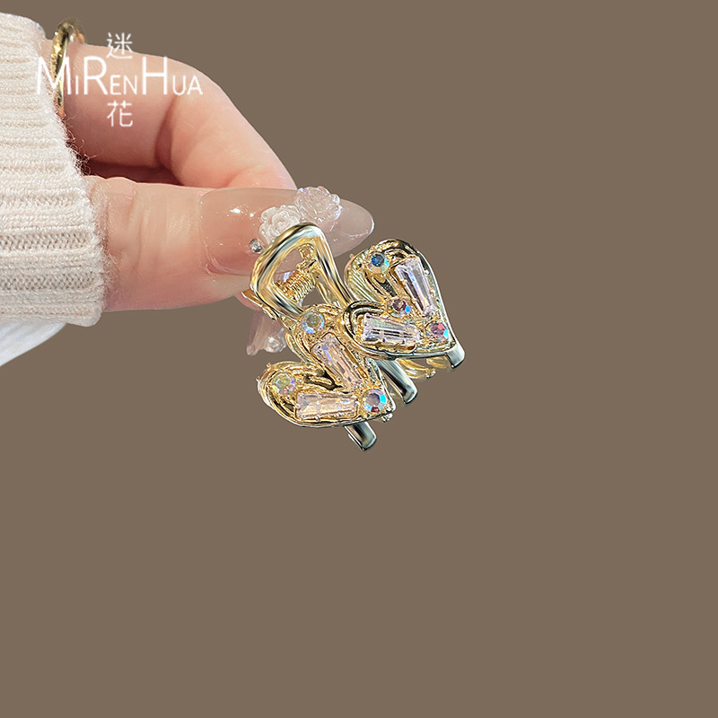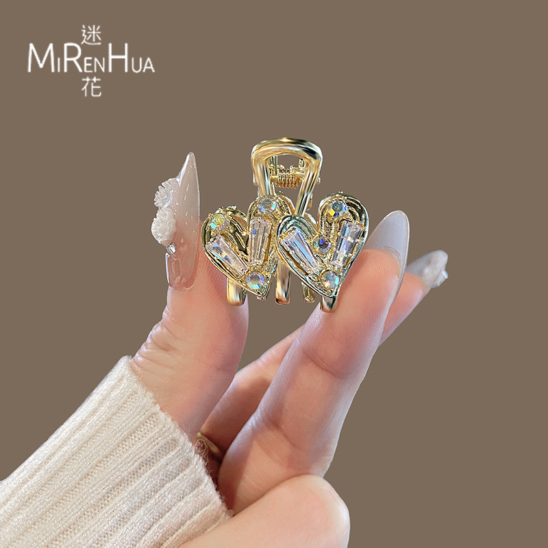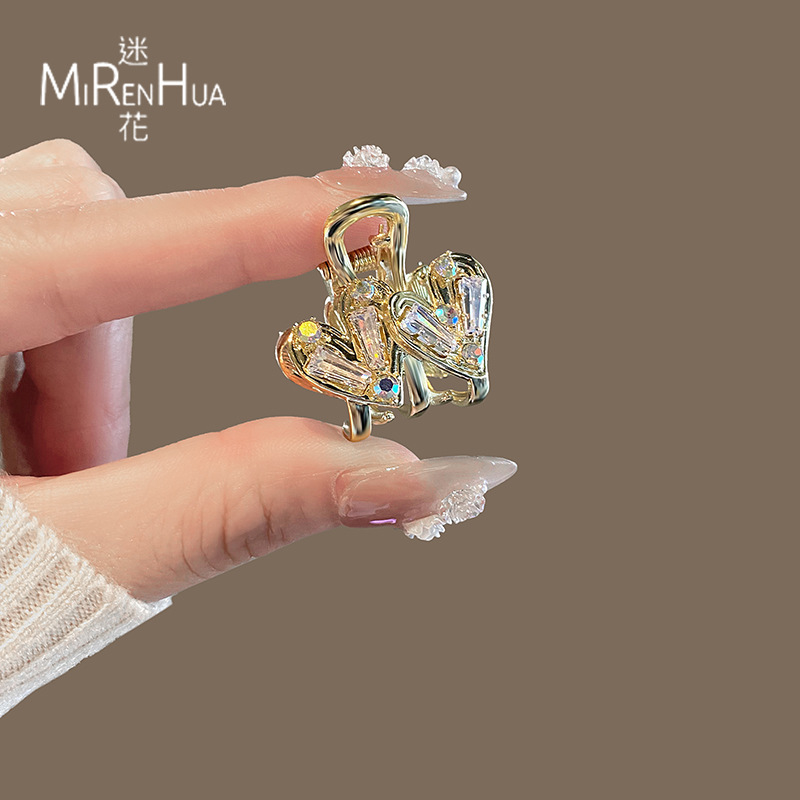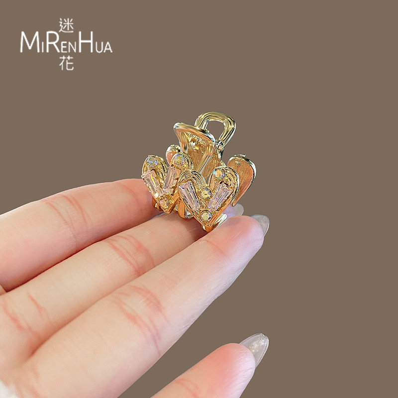 金色水晶爱心抓夹小号夹子女头饰侧边刘海夹前额碎发夹发抓发卡