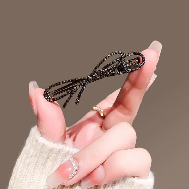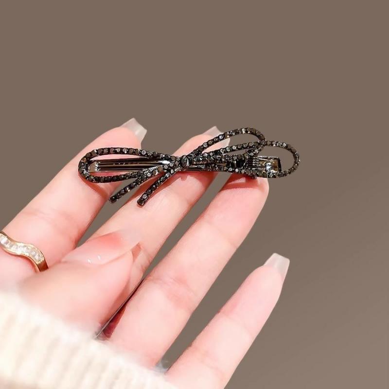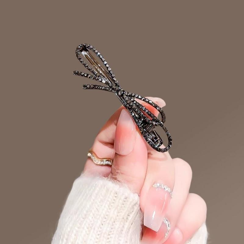 满钻高级感黑色蝴蝶结边夹女前额碎发夹子刘海夹侧边夹气质鸭嘴夹