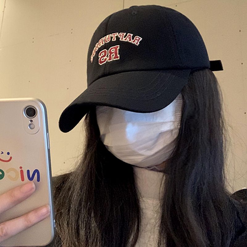 日系软顶棒球帽女简约百搭字母刺绣鸭舌帽宽檐显脸小运动帽子男
