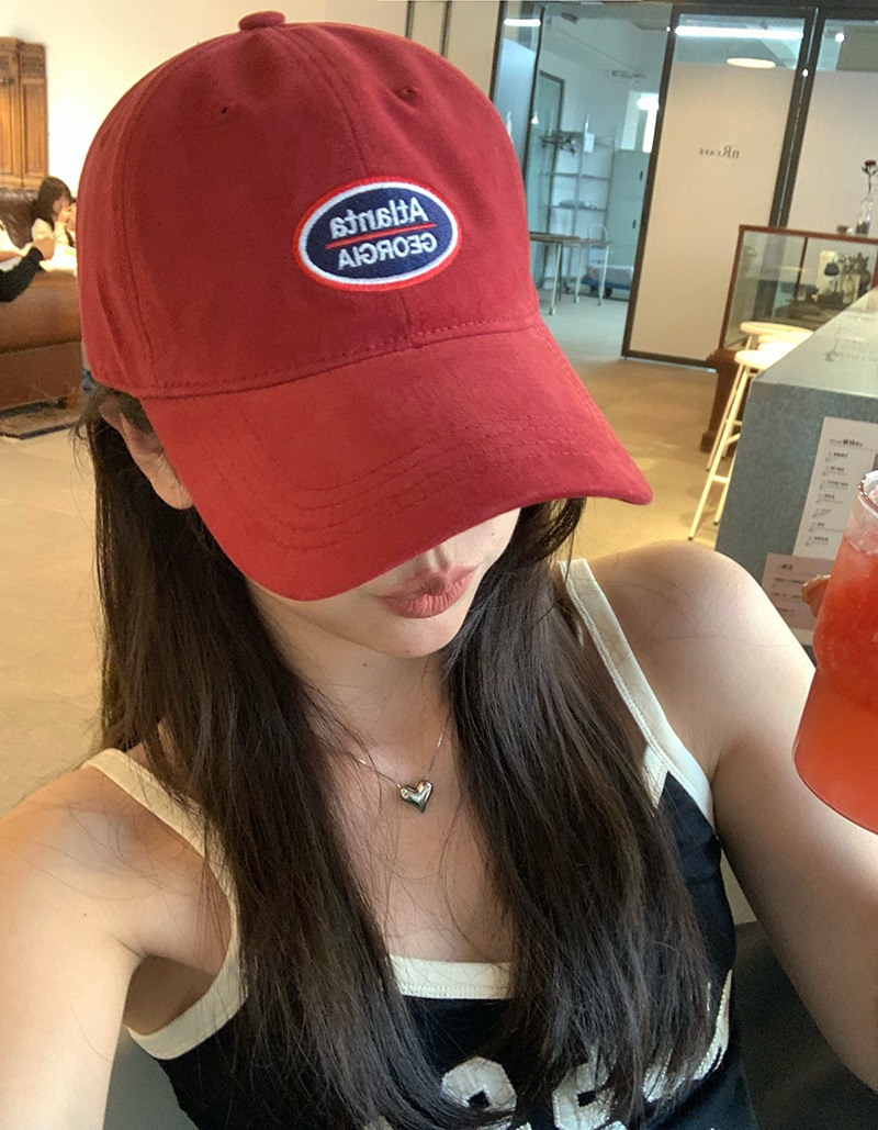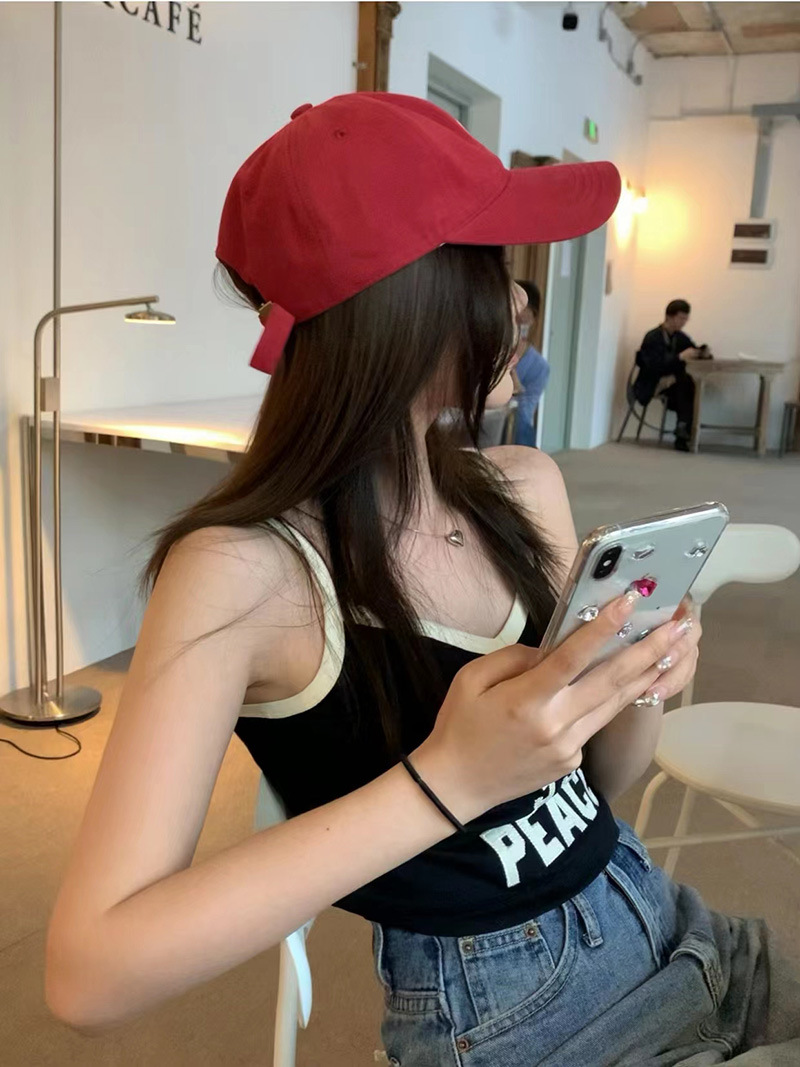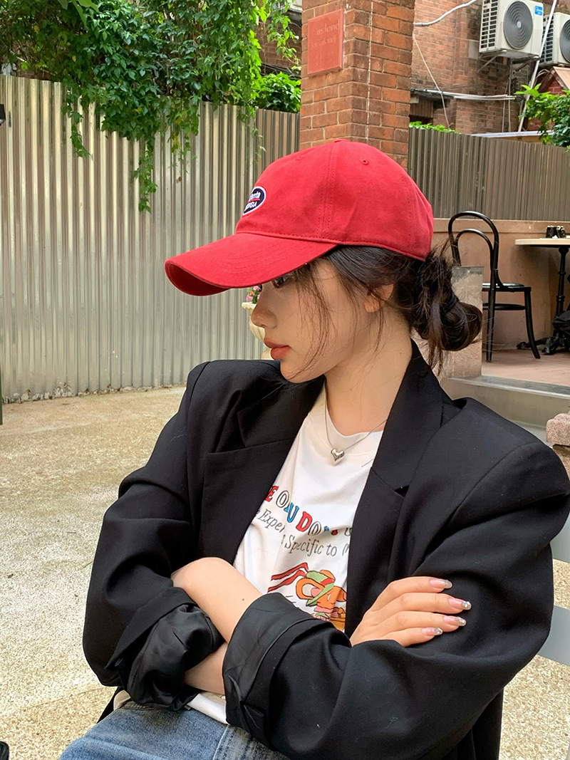 红色棒球帽子女韩版软顶字母刺绣防晒遮阳帽休闲百搭情侣鸭舌帽男