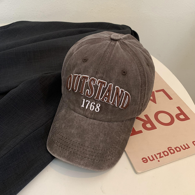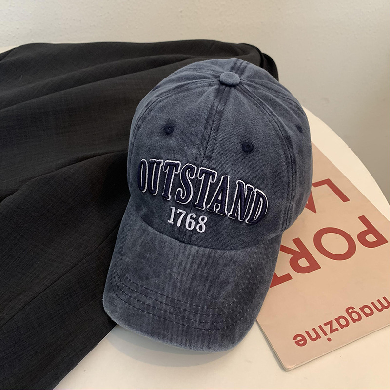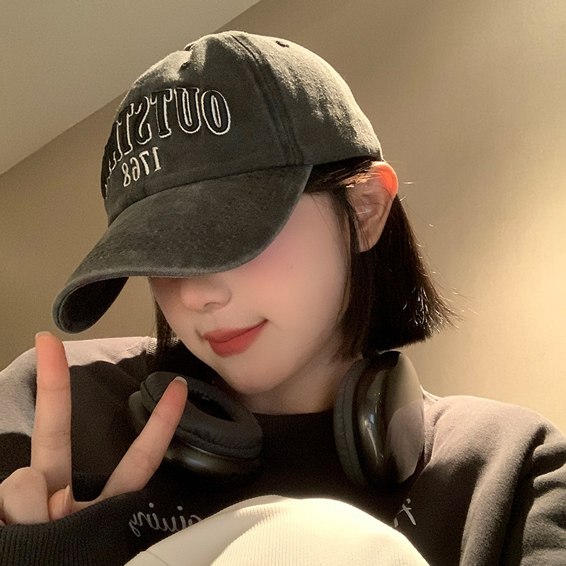 水洗美式复古棒球帽女大头围显脸小百搭做旧鸭舌帽子宽帽檐软顶潮