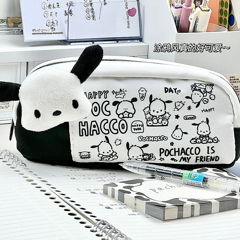 黑白帕恰狗玩偶笔袋可爱高颜值大容量学生文具袋铅笔收纳袋盒