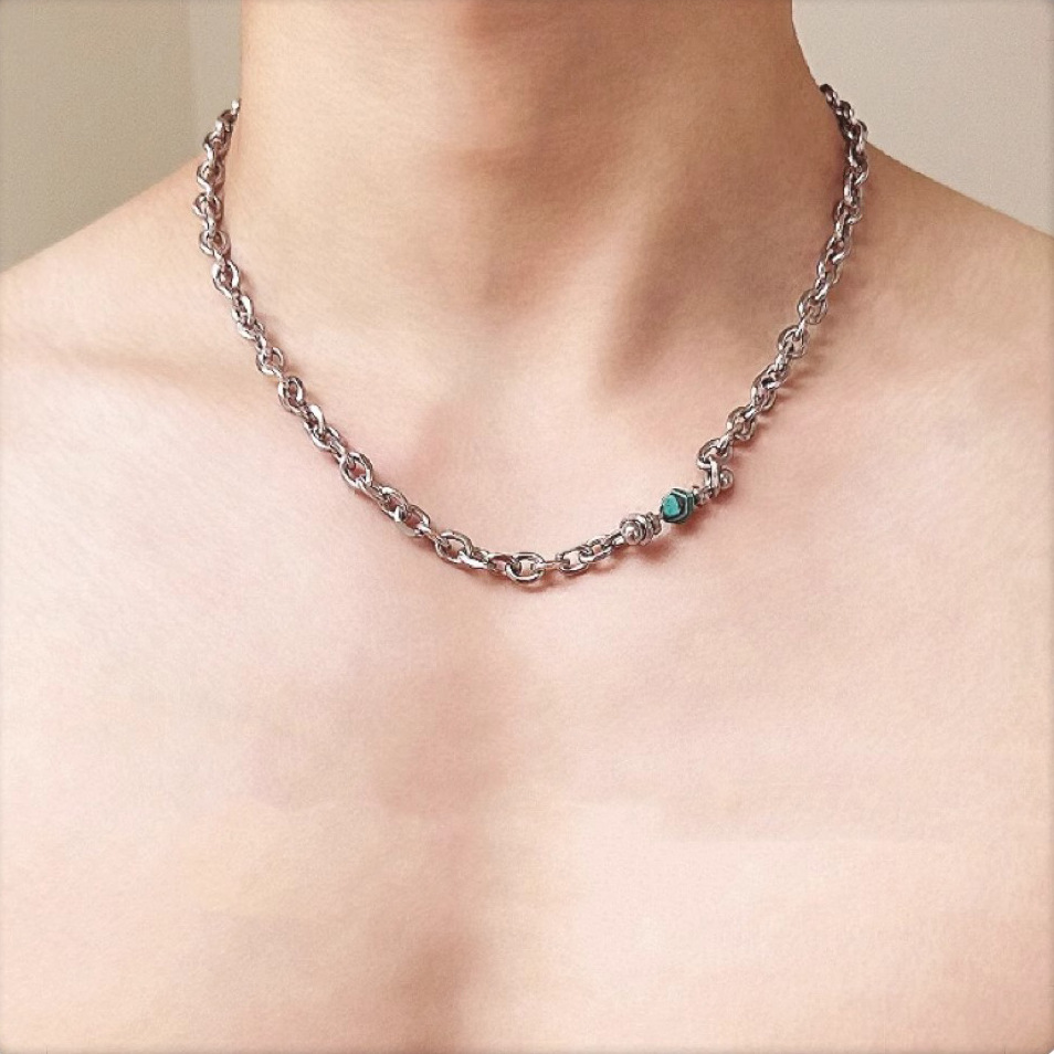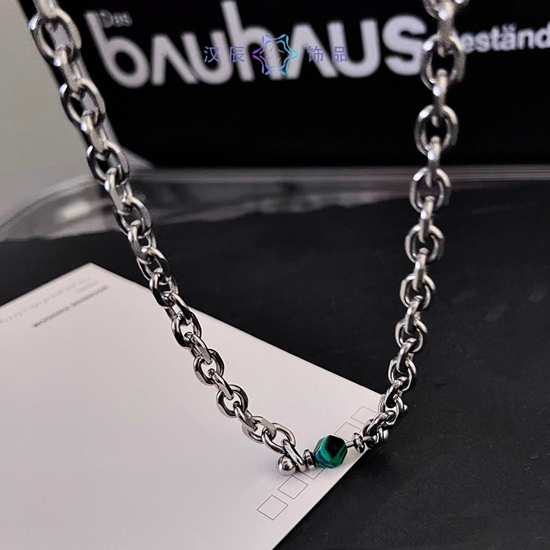 蓝色转运珠吊坠项链男高级感不掉色欧美简约饰品女潮爆款配饰