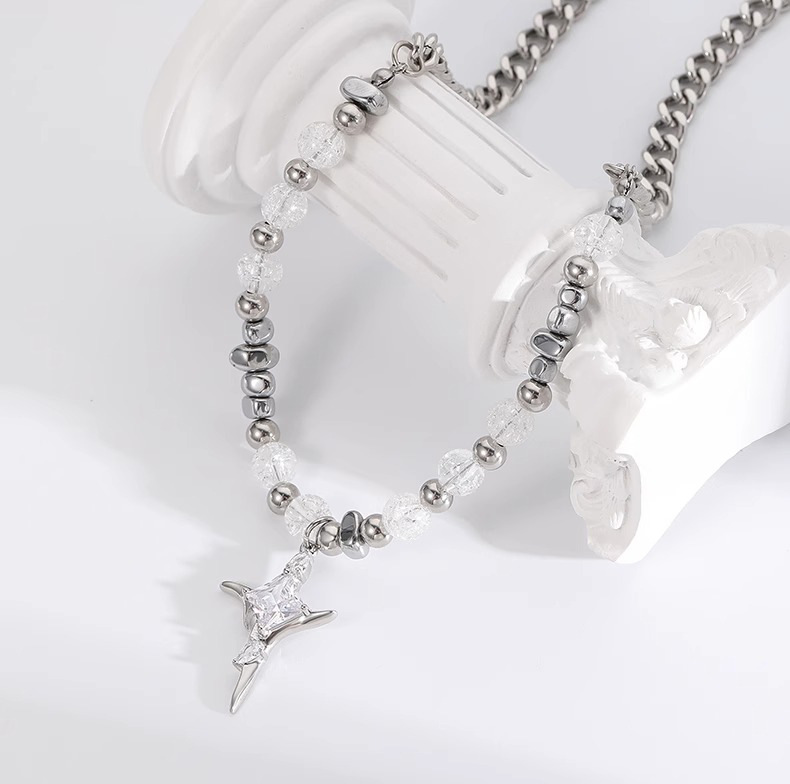 小众星体裂纹珠项链男百搭个性高级感配饰潮流时尚锁骨链情侣饰品
