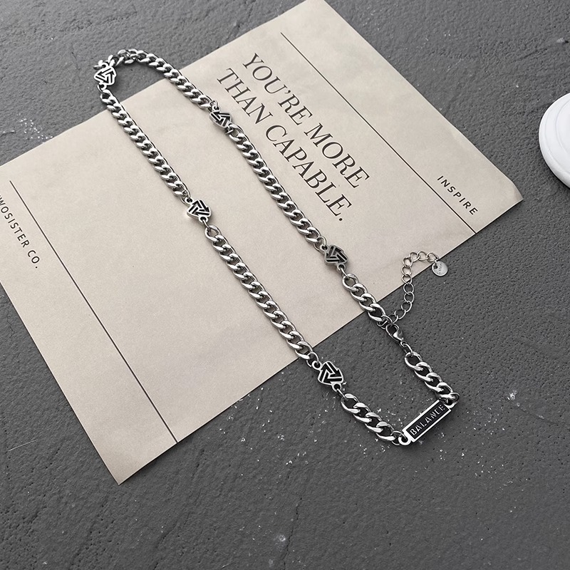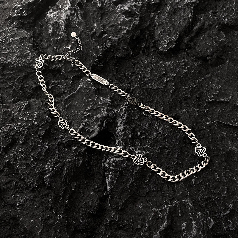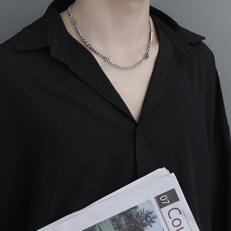 项链男不规则钛钢滴油不掉色三角锁骨链新款古巴链简约饰品