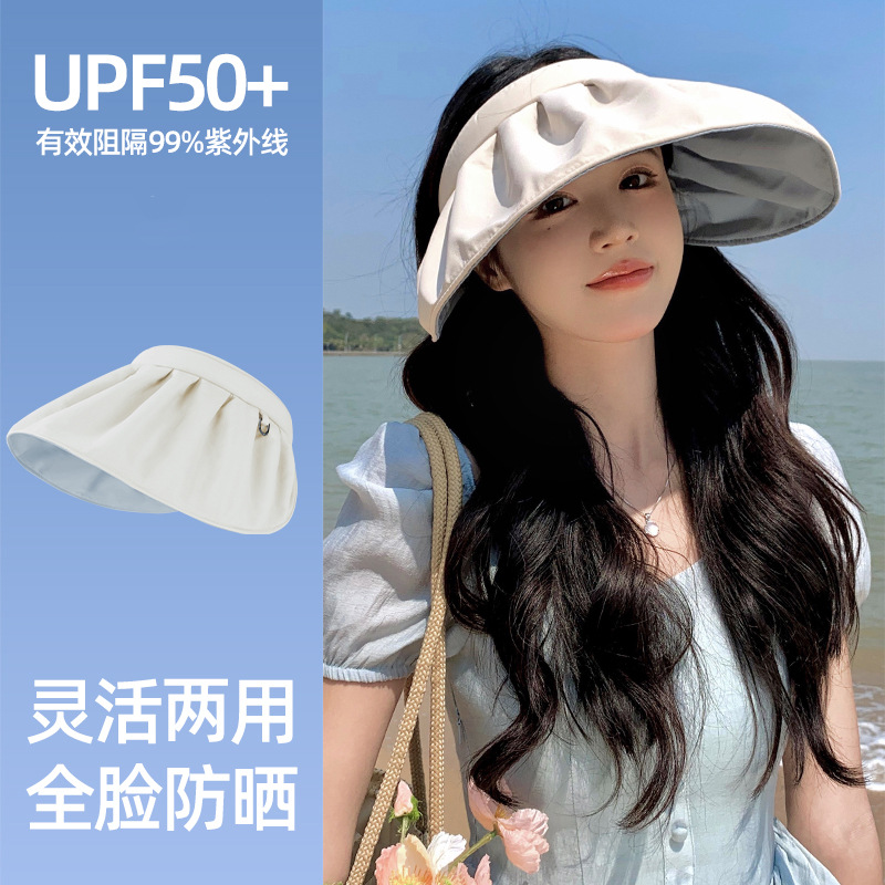 空顶防晒帽女款夏季黑胶防紫外线贝壳遮阳帽太阳帽大帽檐