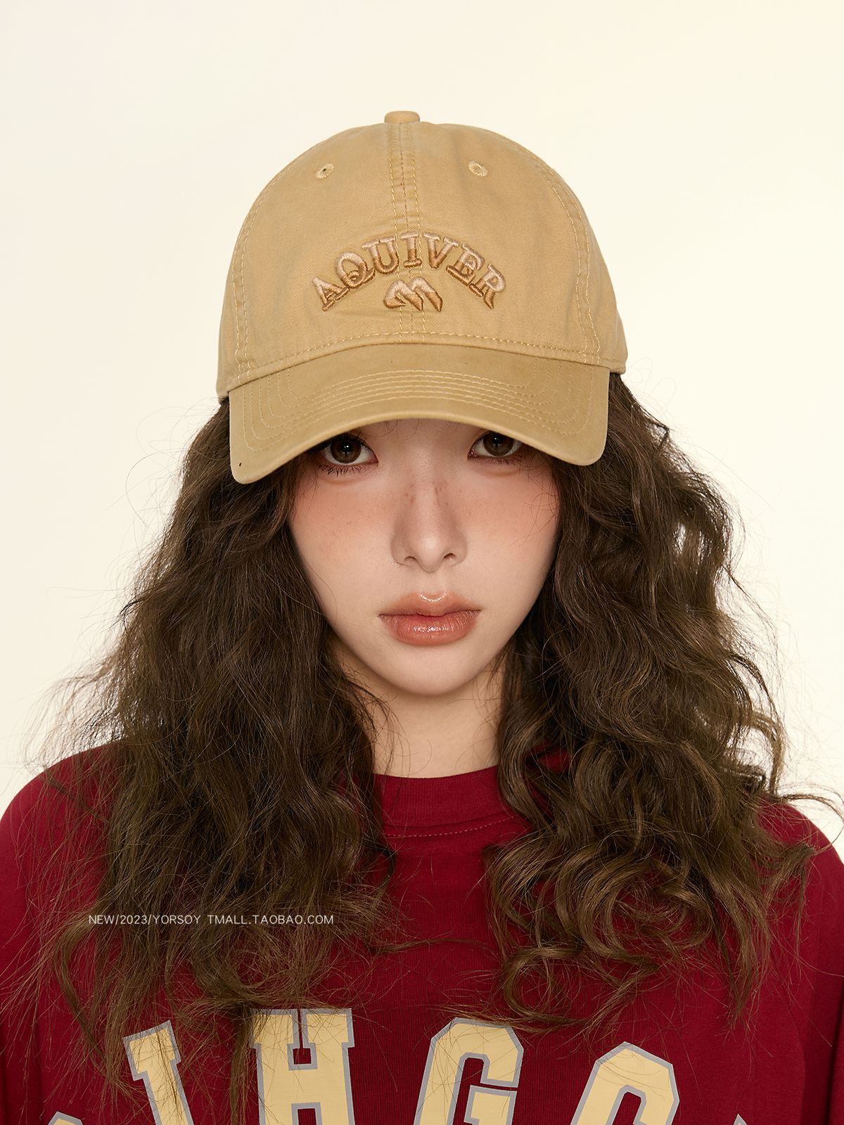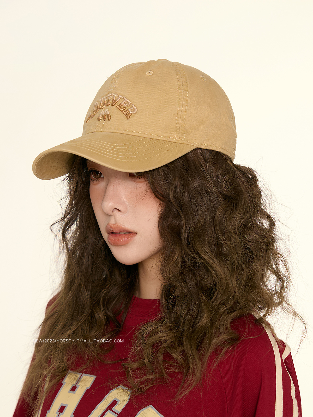 美式复古卡其色鸭舌帽子女磨毛棉布深顶加宽帽檐休闲街头棒球帽男