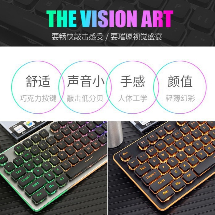 L1键盘静音游戏有线机械手感电脑巧克力薄膜无声办公鼠标套装