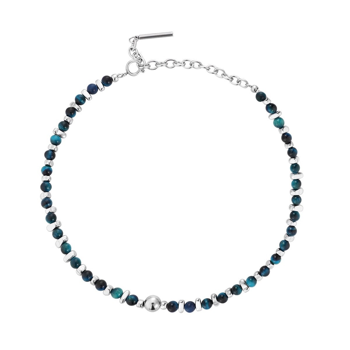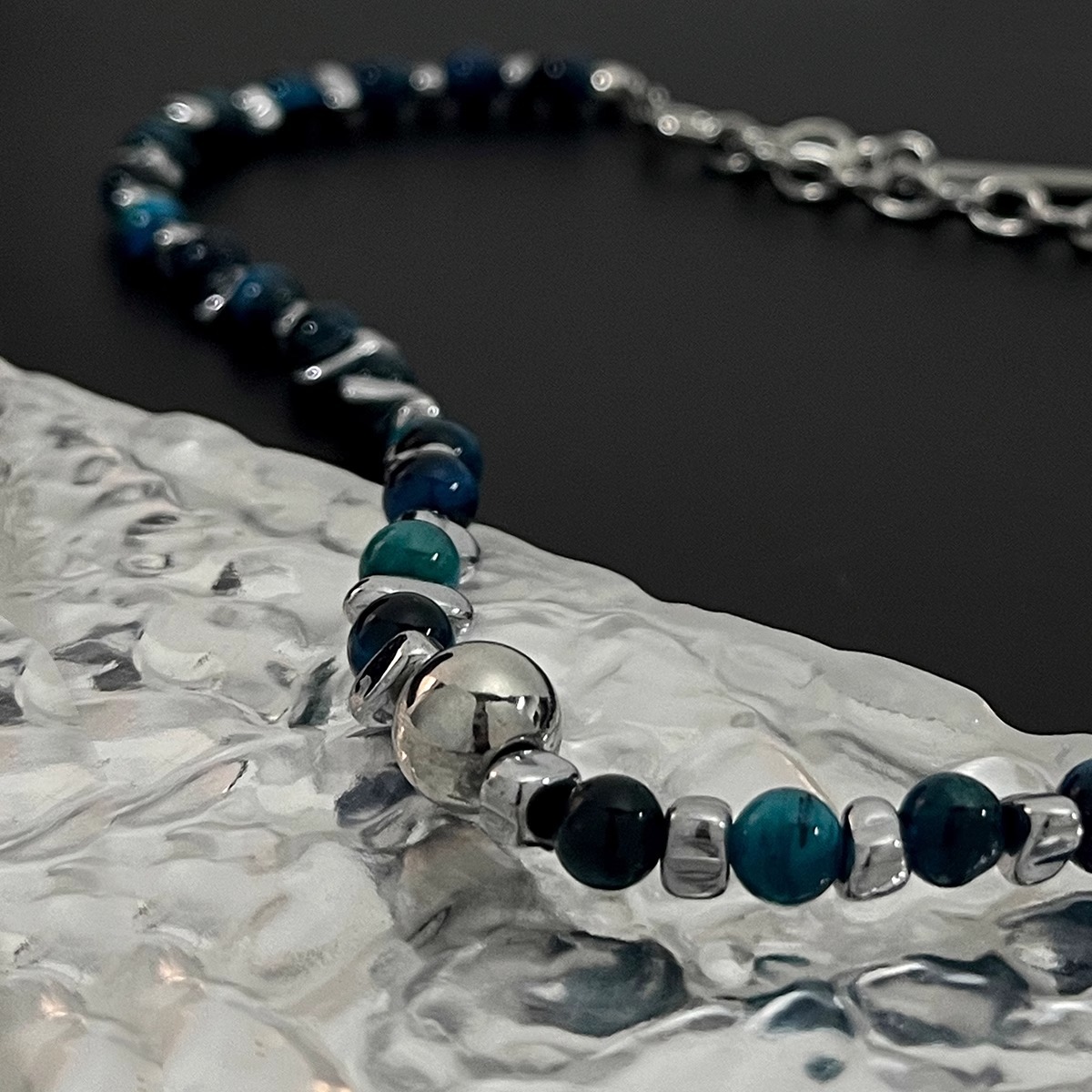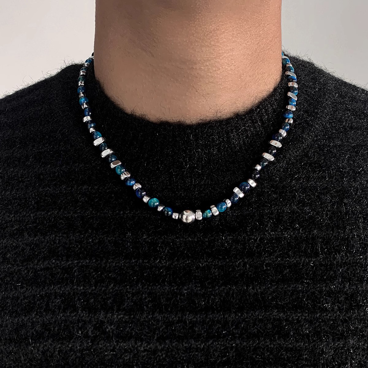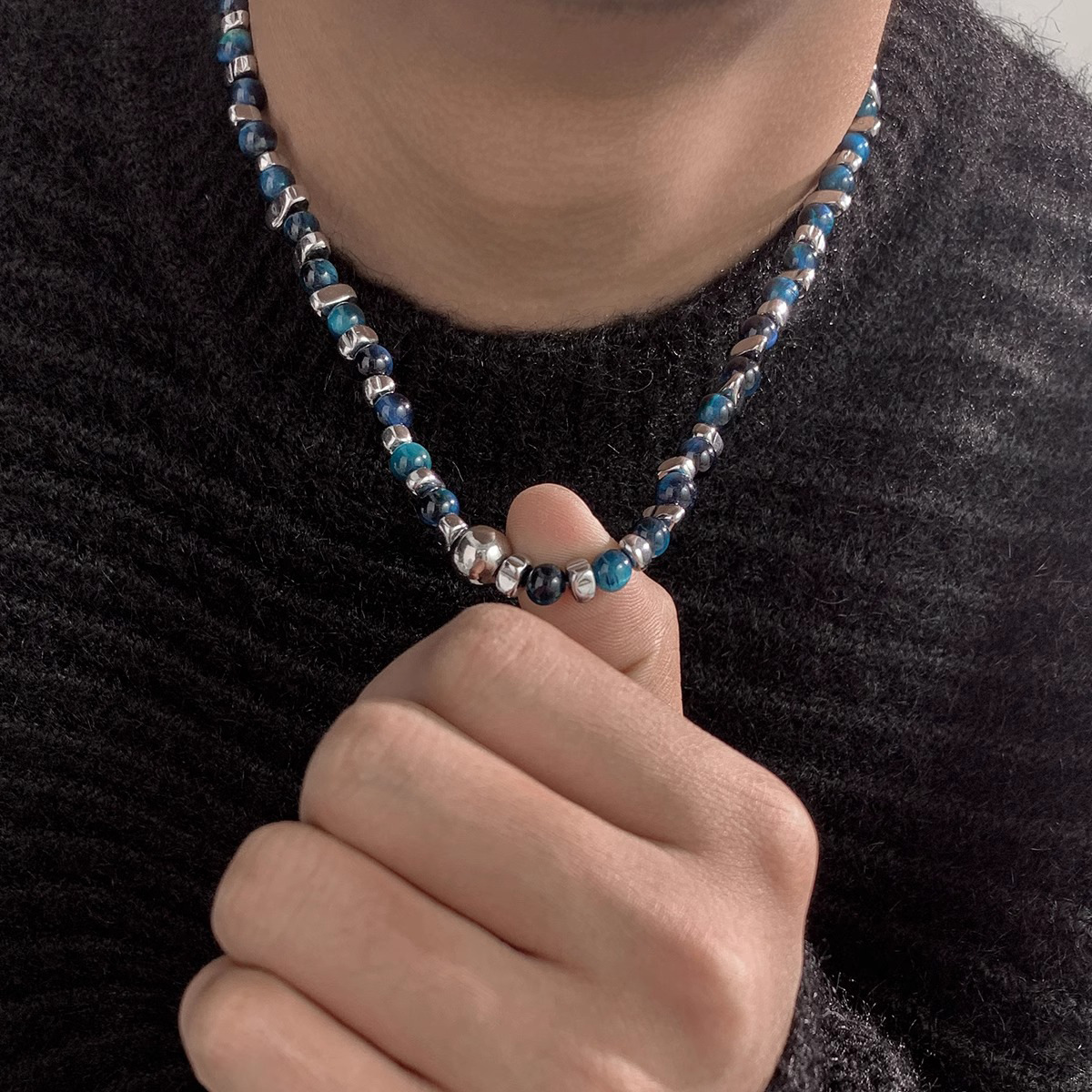 蓝色串珠拼接项链男高级感百搭嘻哈配饰女潮新款简约小众饰品