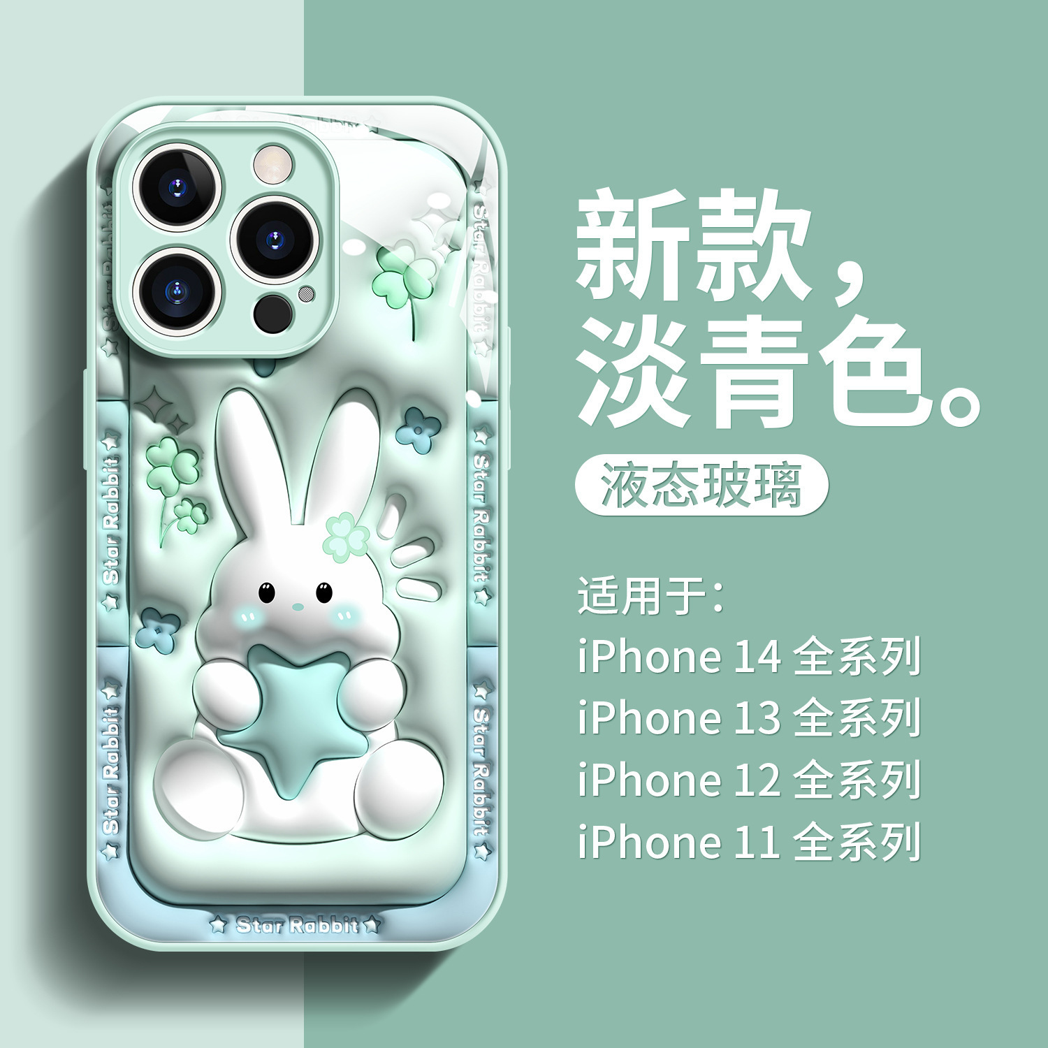 ins风淡青色适用于苹果14Pro手机壳直边玻璃iPhone14防摔创意女13