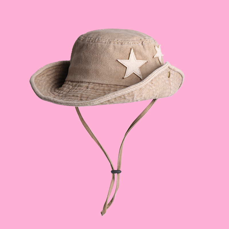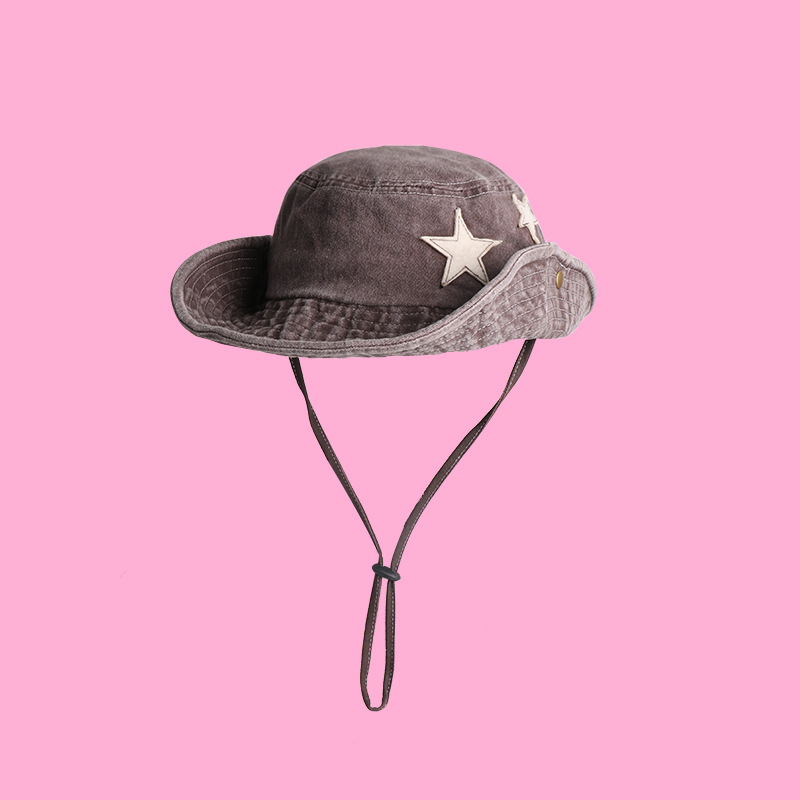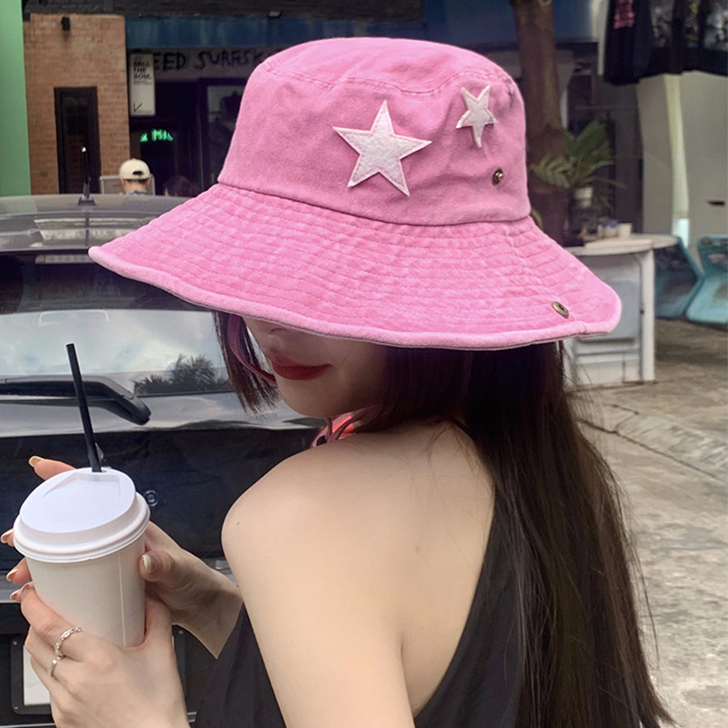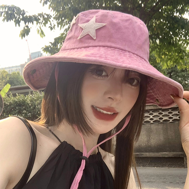 粉色渔夫帽女夏季辣妹复古户外登山帽遮阳防晒露营登山西部牛仔帽