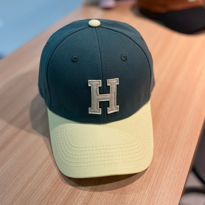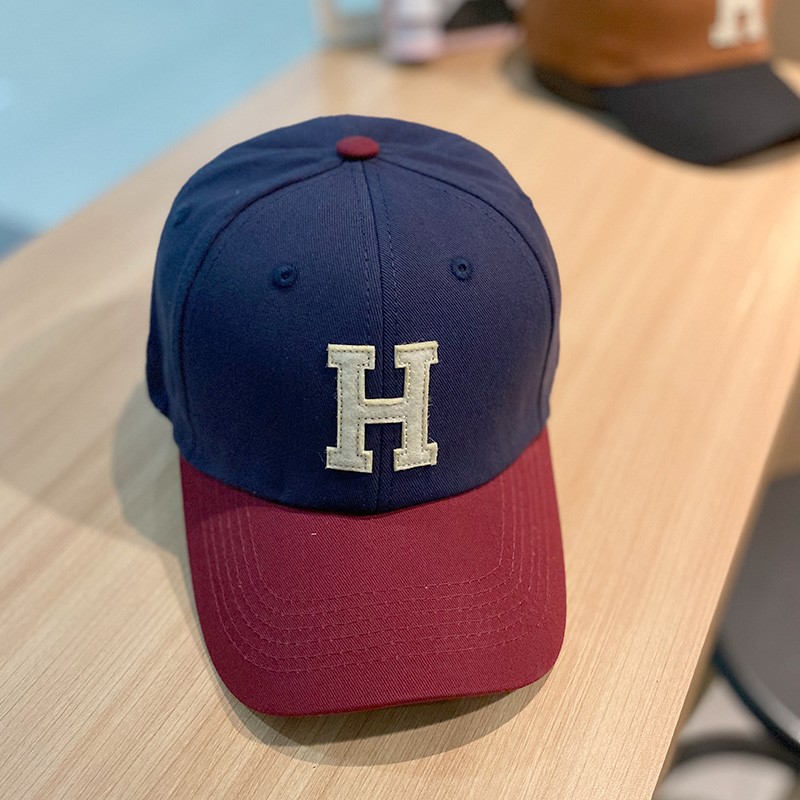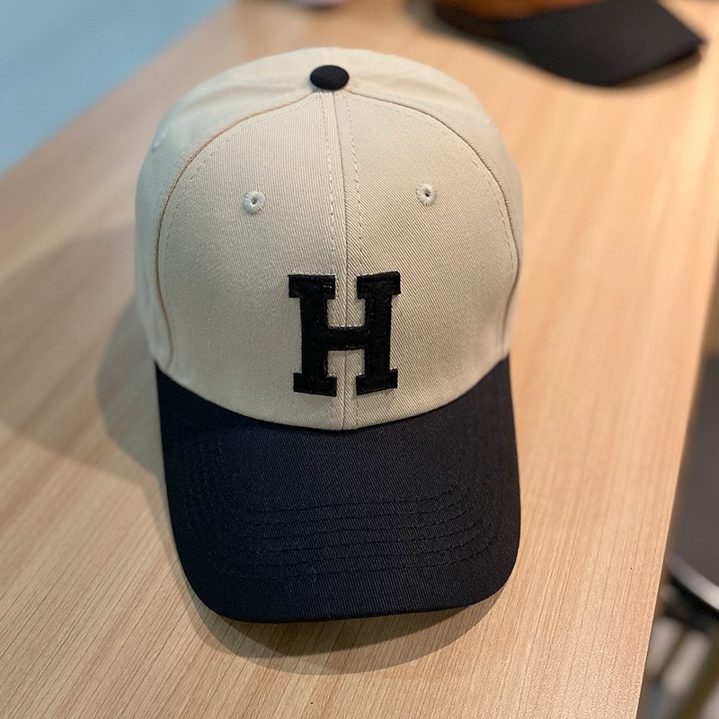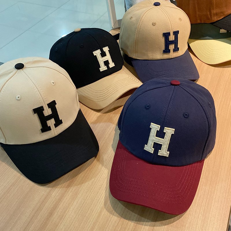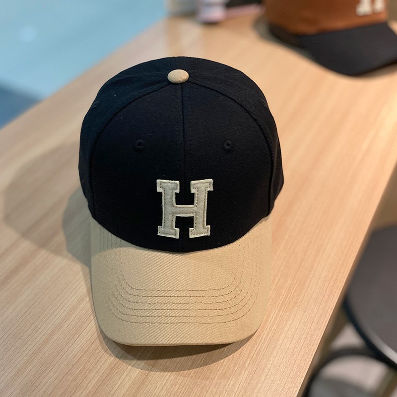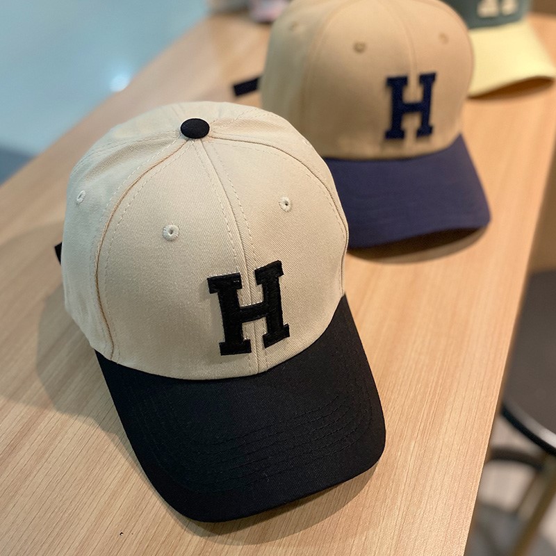 日本帽子女夏季潮牌H大字母拼接檐棒球帽男街拍显脸小休闲鸭舌帽