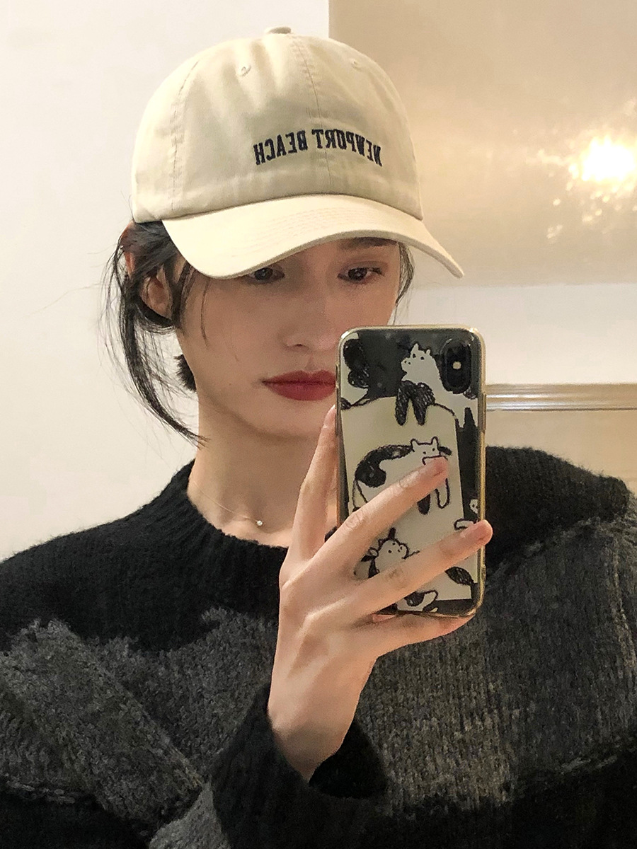 做旧英文棒球帽百搭短檐遮阳帽大头围显脸小牛仔鸭舌帽女春夏季