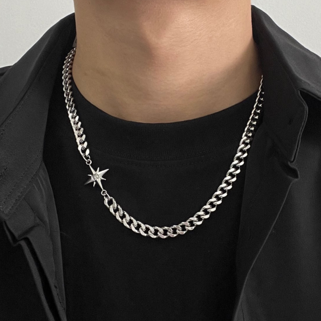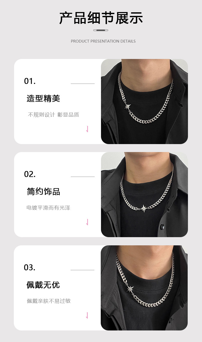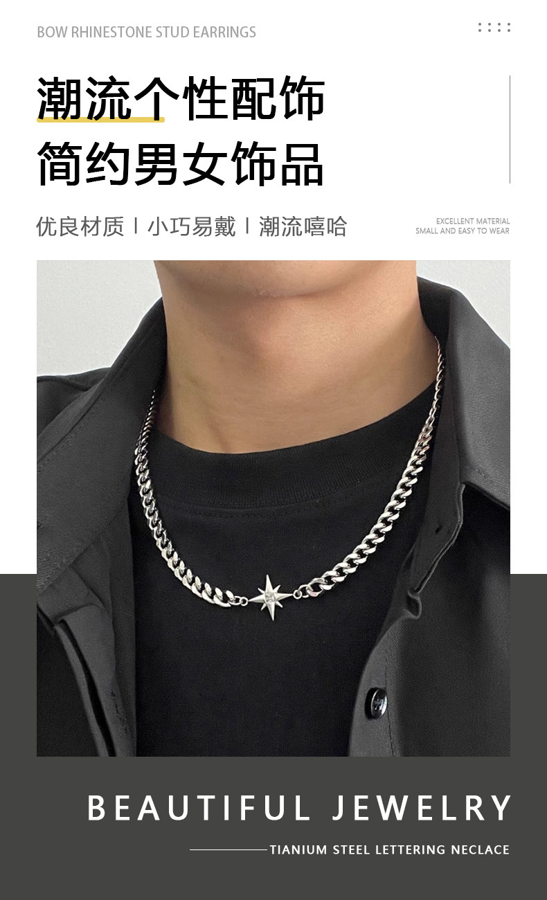 八芒星钛钢项链男简约百搭古巴链女不掉色高级感嘻哈朋克配饰饰品