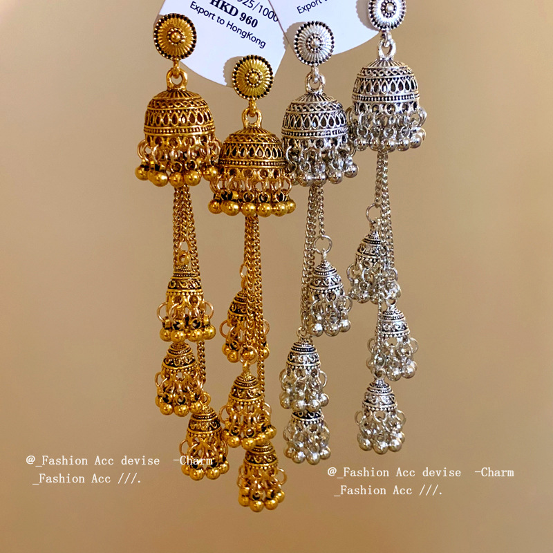 钢针跨境圆形流苏耳环复古宫廷风长款耳坠气质高级感时尚耳饰