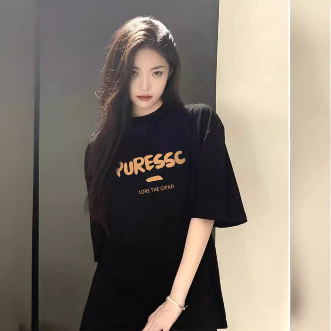 夏新款设计感小众纯棉大版正肩短袖T恤休闲慵懒情侣款上衣