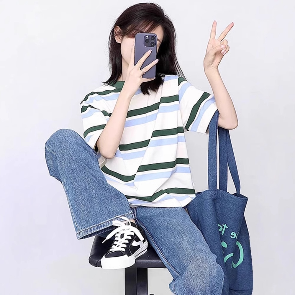 美式复古正肩短袖T恤女夏季新款设计感小众圆领宽松显瘦上衣