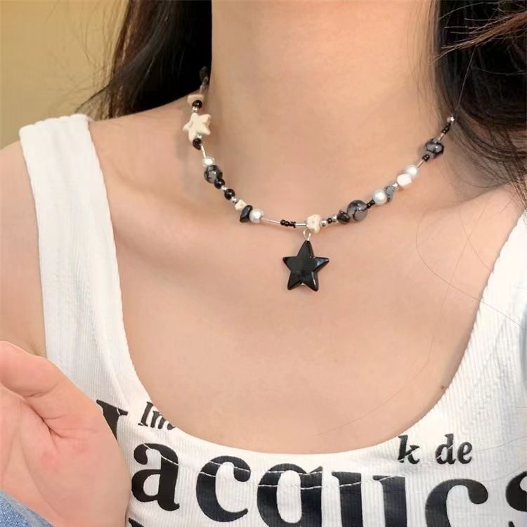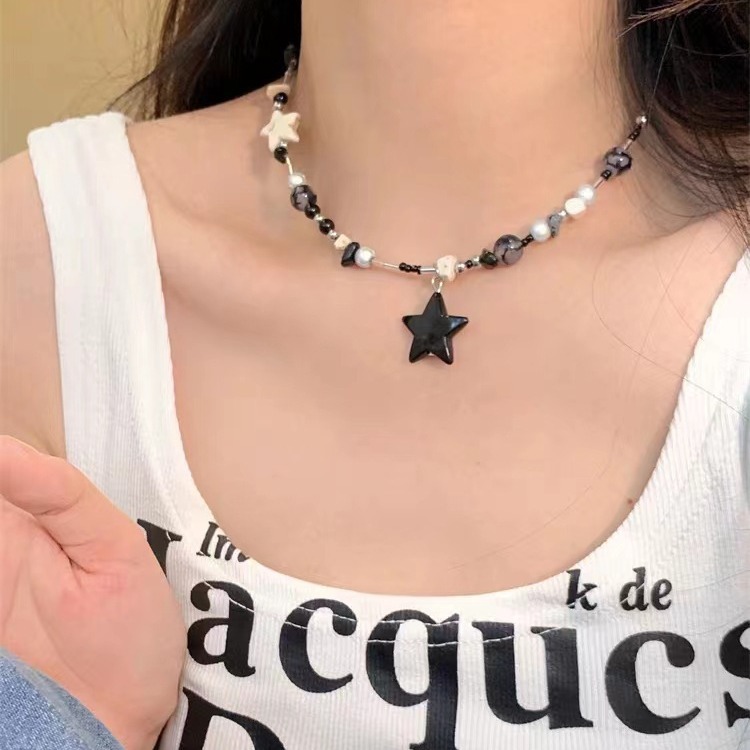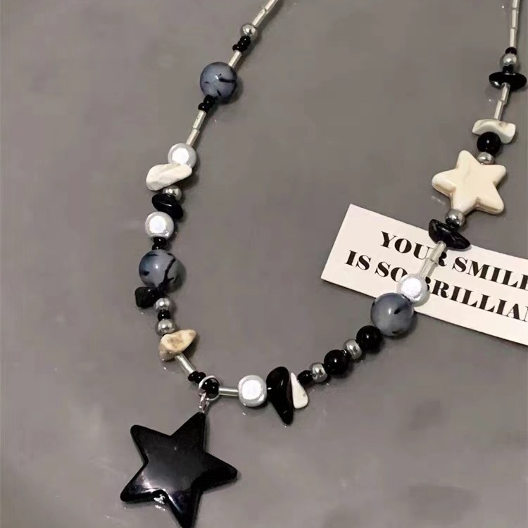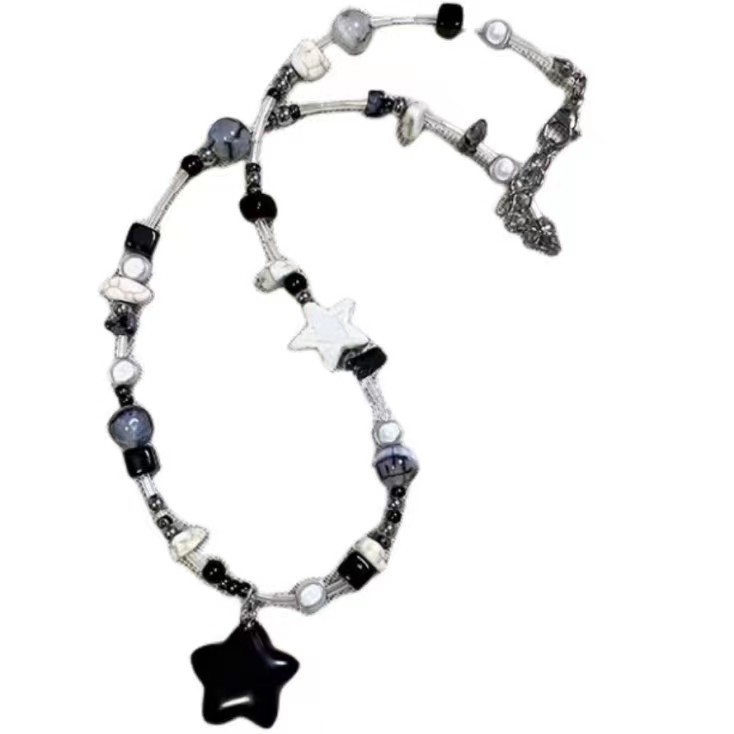 甜酷风黑色星星树脂项链串珠锁骨链女高级感新中式项链女复古配饰