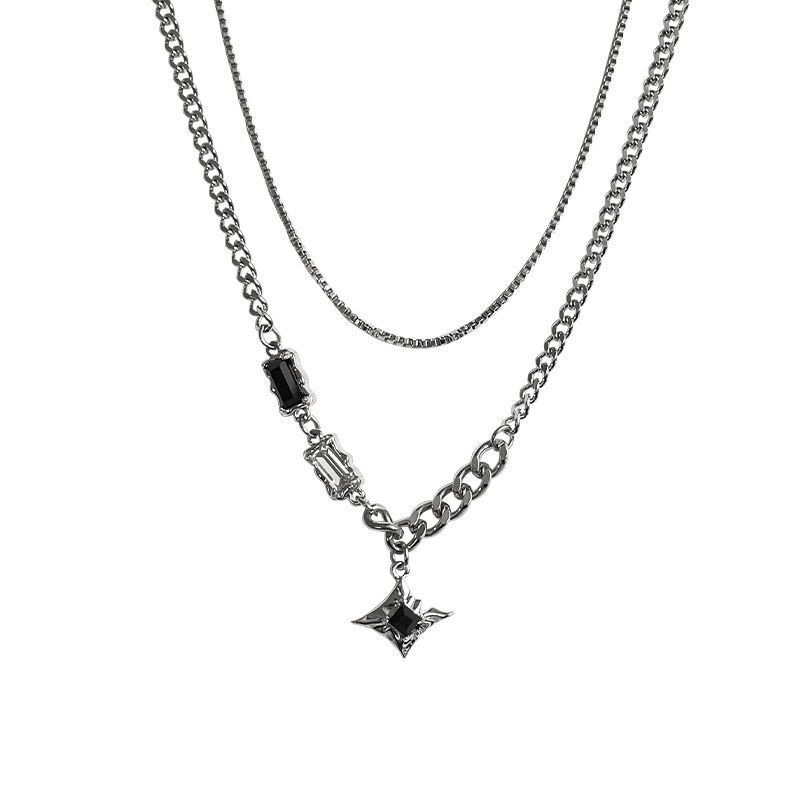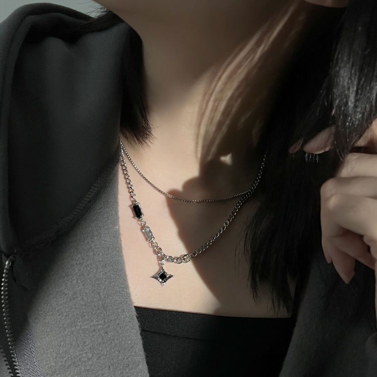 芒星双层项链男款潮毛衣链轻奢小众设计感嘻哈风情侣男生女锁骨链