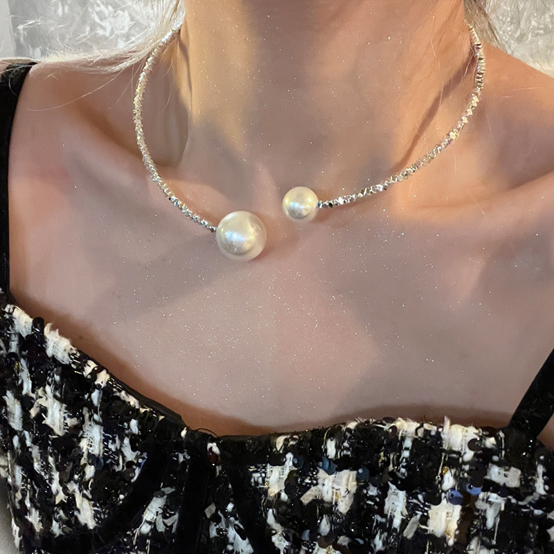 气质高级感超闪碎银子项圈轻奢性感珍珠项链小众设计感个性锁骨链