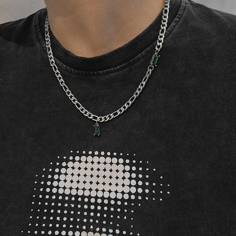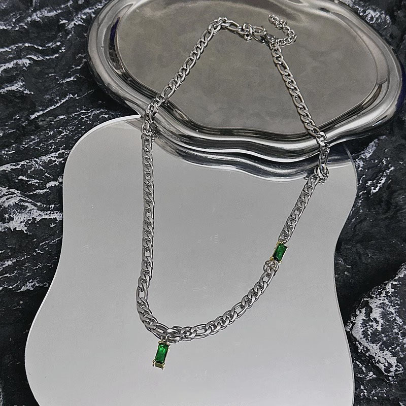 祖母绿锆石项链男欧美爆款年高级感饰品