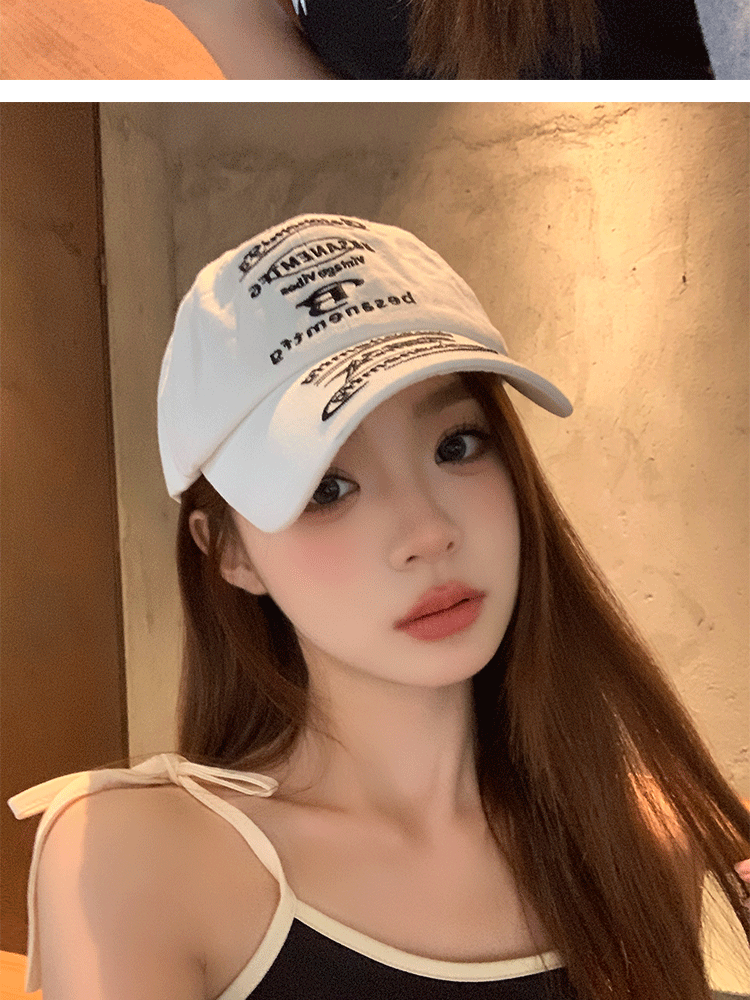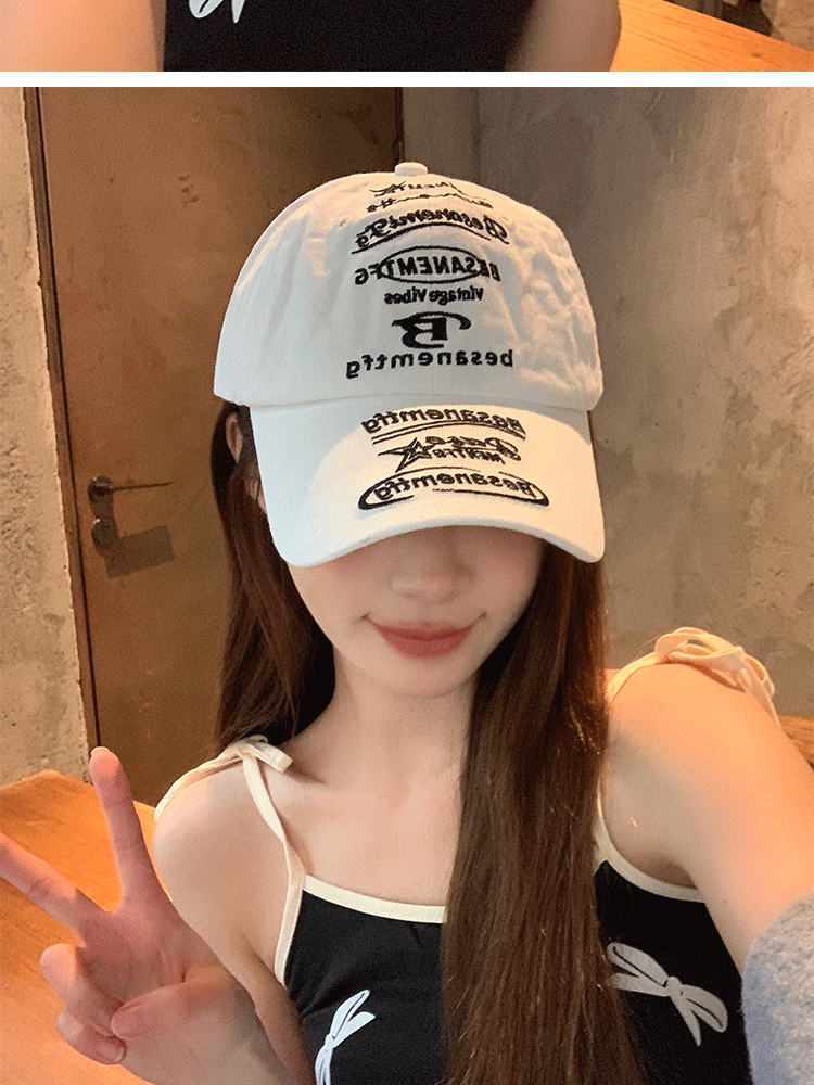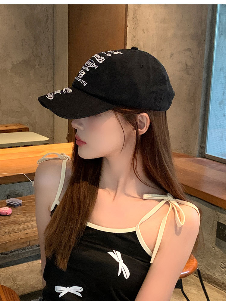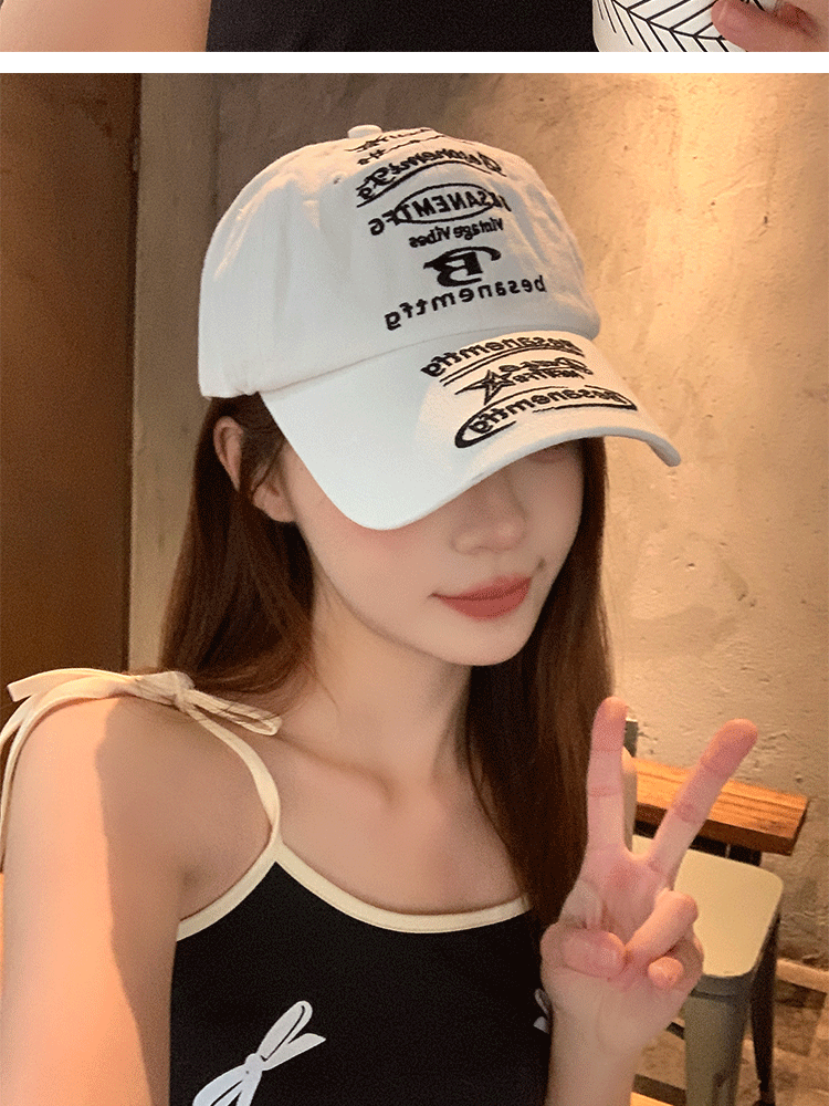 韩国小众设计鸭舌帽女款街头潮牌棒球帽女刺绣字母软顶情侣遮阳帽