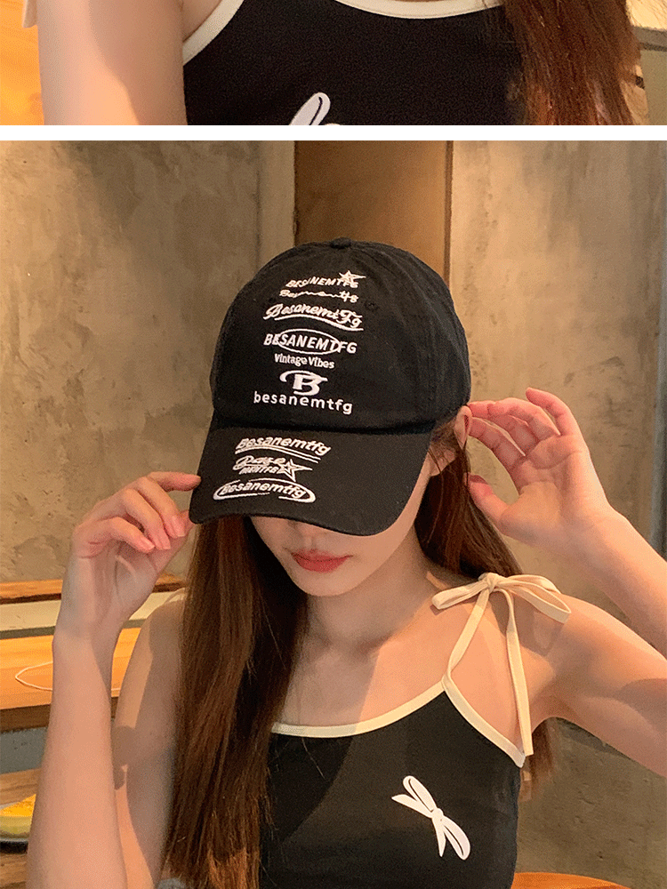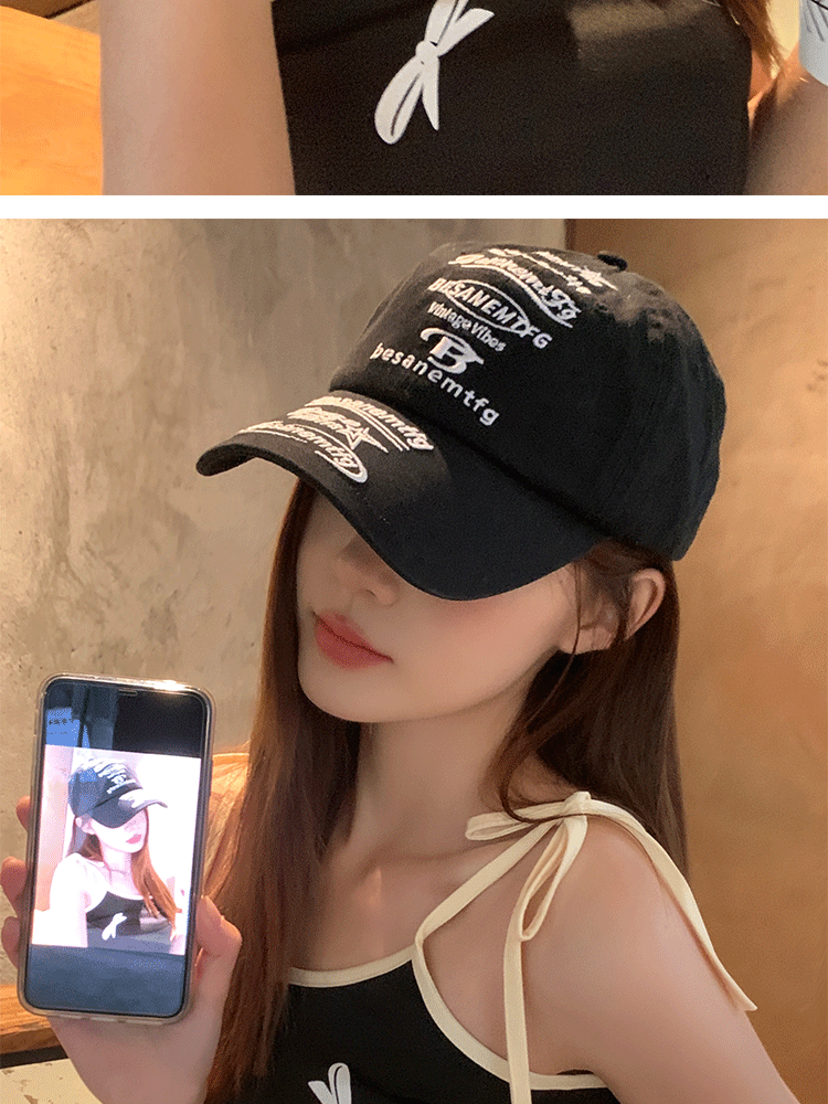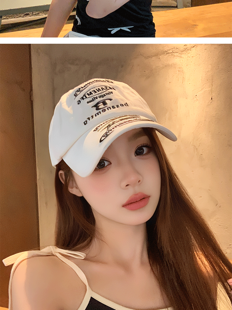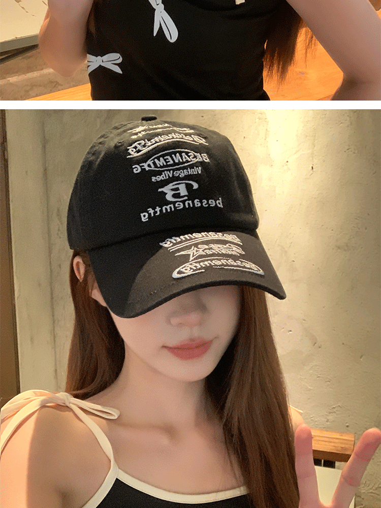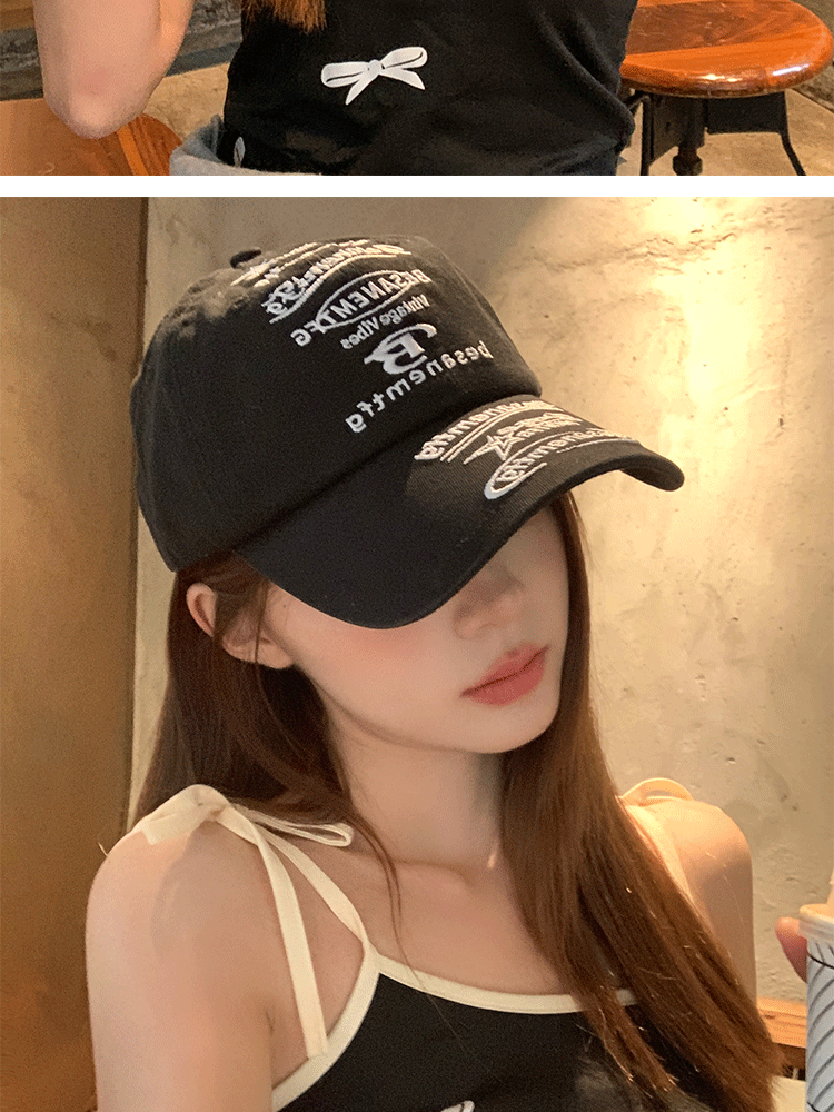 韩国小众设计鸭舌帽女款街头潮牌棒球帽女刺绣字母软顶情侣遮阳帽