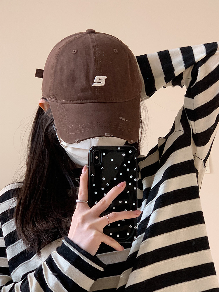 棒球帽子女款美式复古字母ins韩版百搭显脸小软顶潮牌鸭舌帽