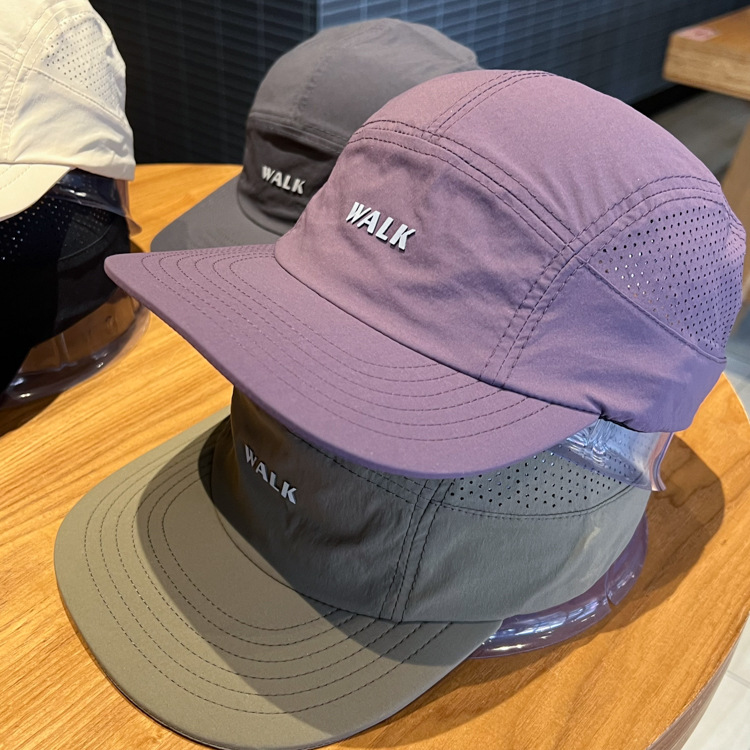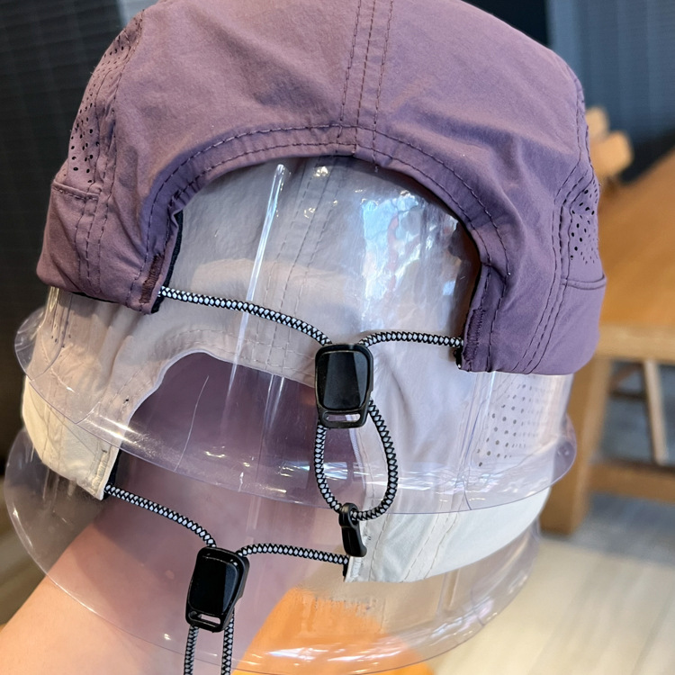 野营帽速干宽帽檐露营风博主新款抽绳平沿户外短檐六片网眼棒球帽