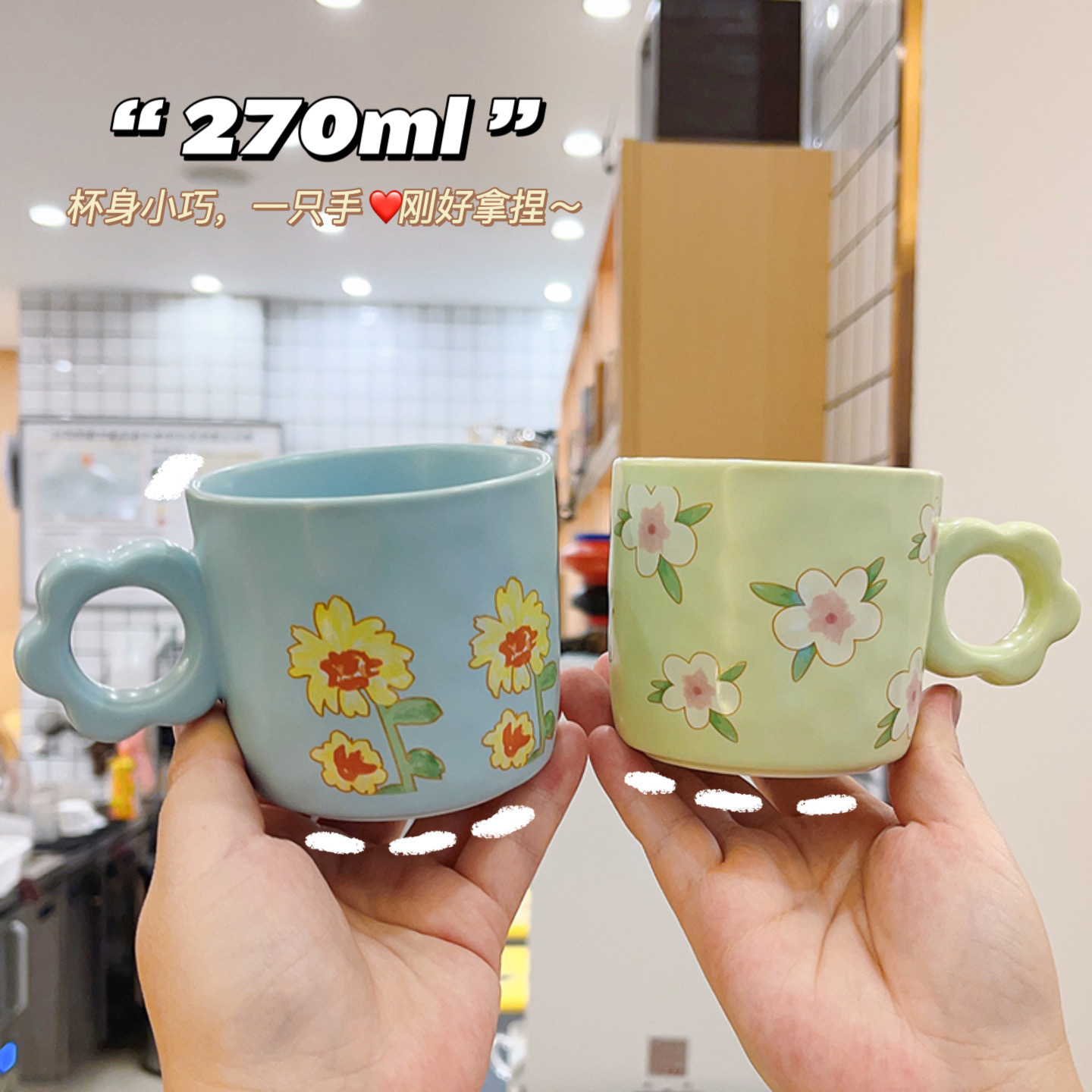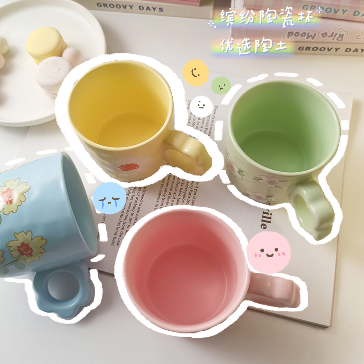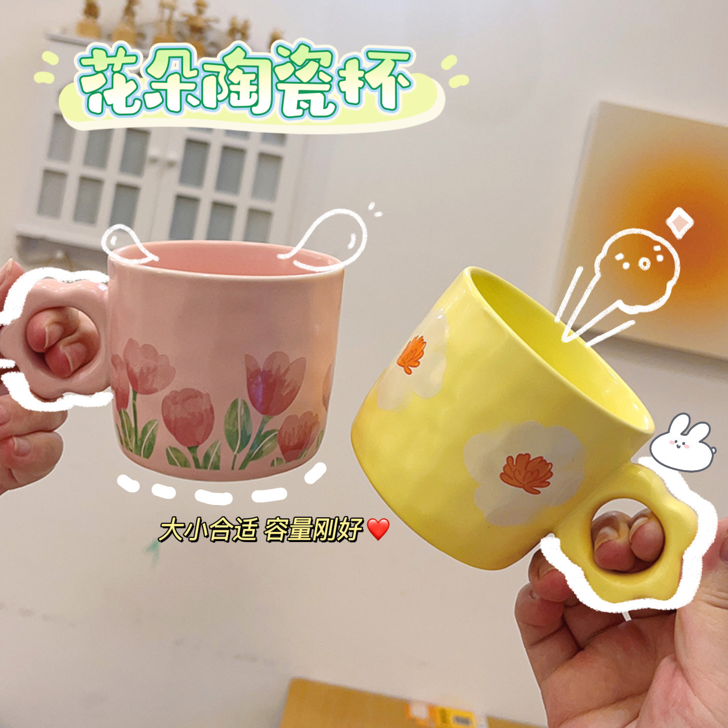 ins陶瓷杯子花朵小众高颜值可爱情侣杯家用宿舍喝水杯早餐 马克杯