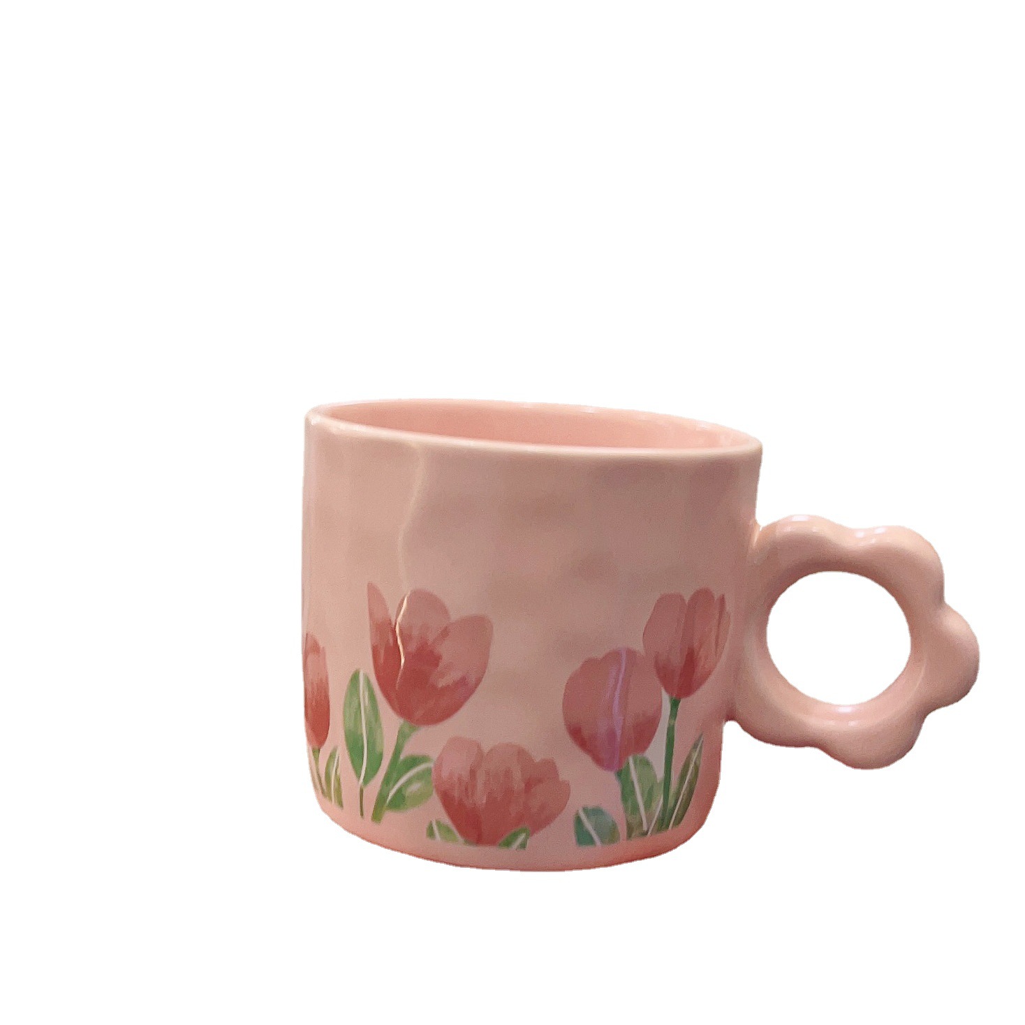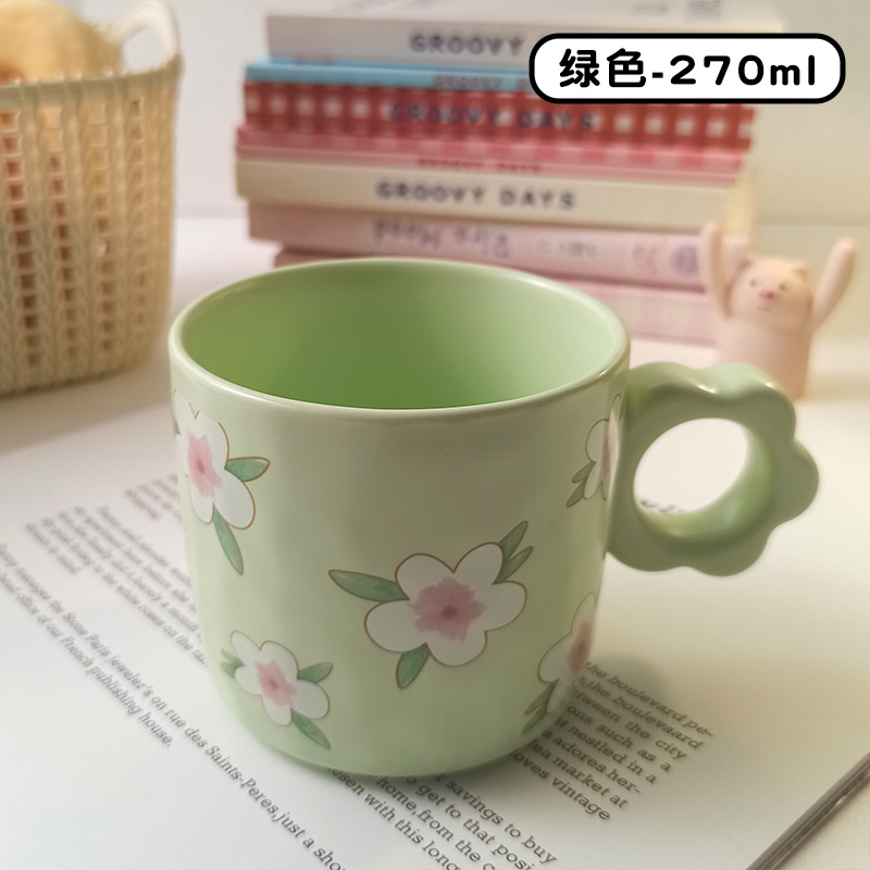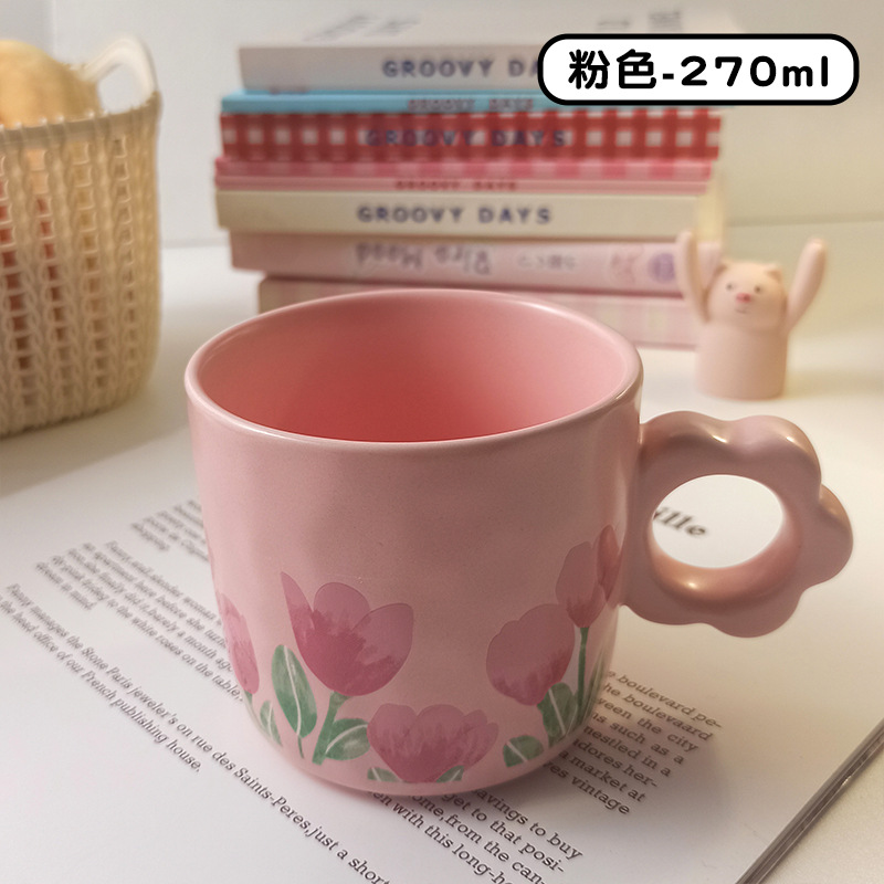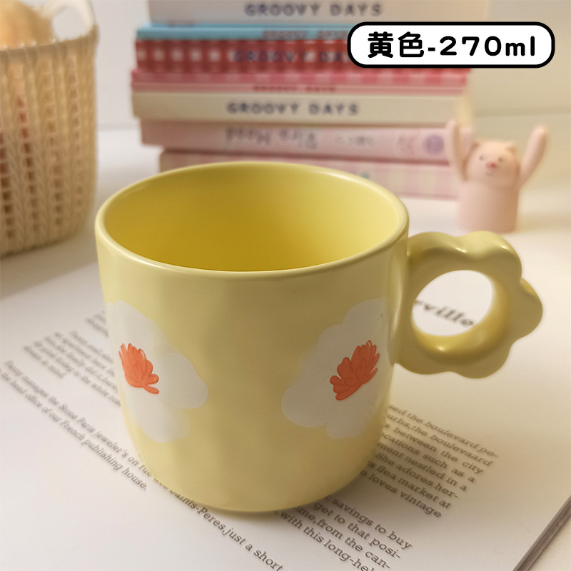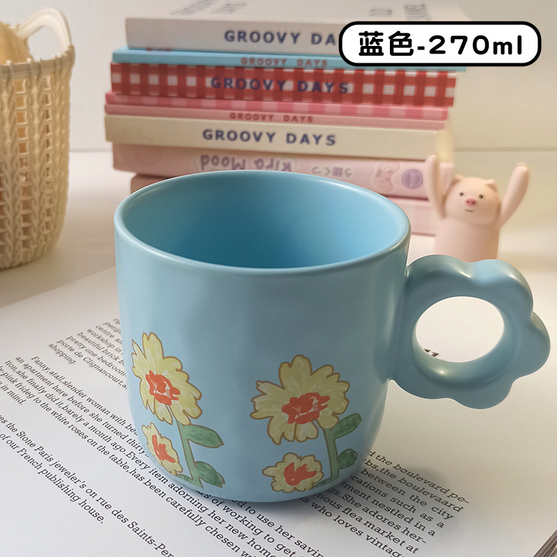 ins陶瓷杯子花朵小众高颜值可爱情侣杯家用宿舍喝水杯早餐 马克杯