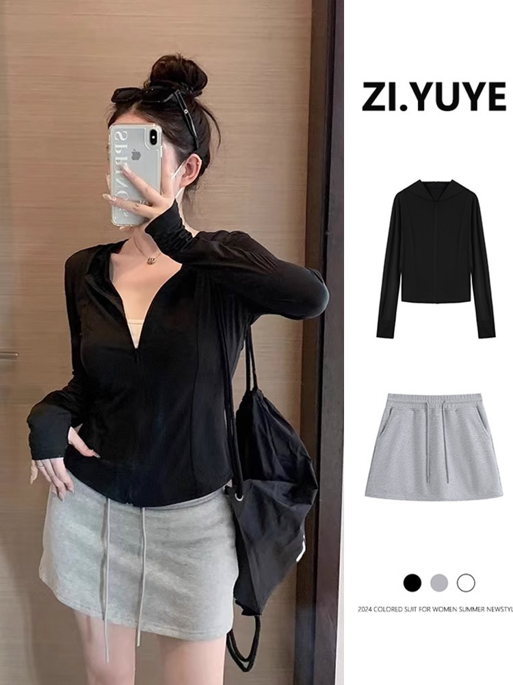 休闲运动服防晒开衫半身包臀裙甜妹穿搭套装女夏季凉爽透气两件套
