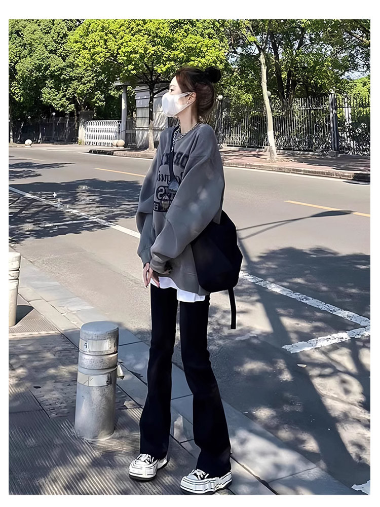 黑色喇叭裤女年新款春秋高腰显瘦小个子垂坠感休闲微喇马蹄裤