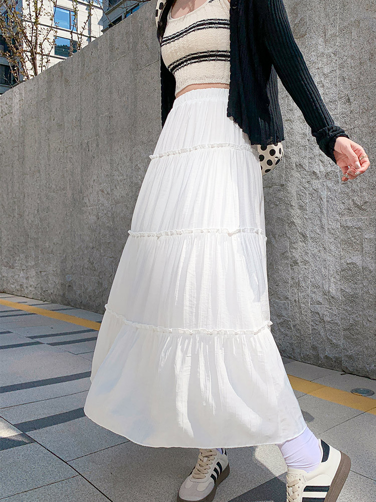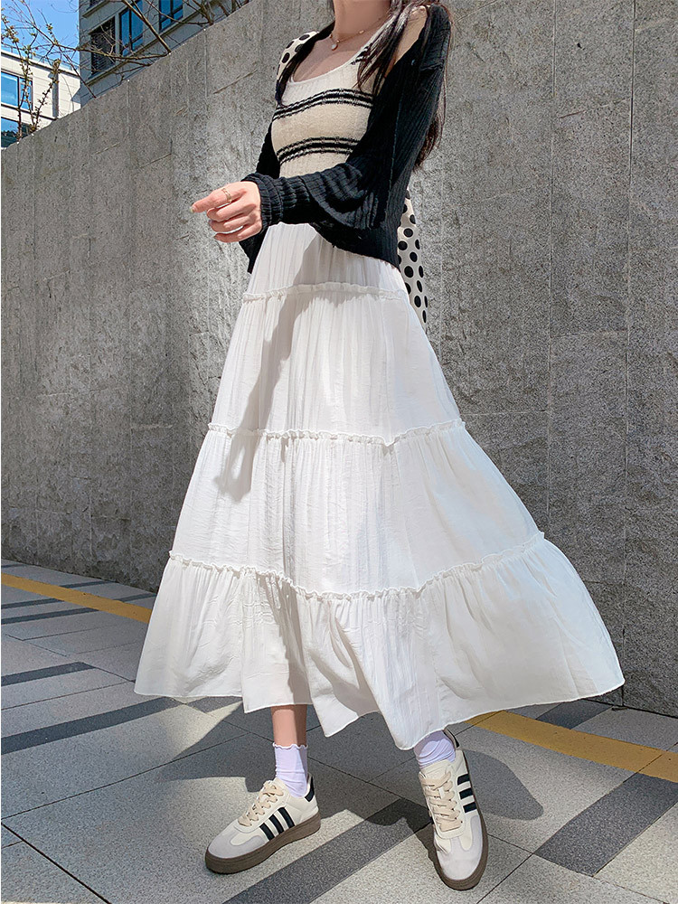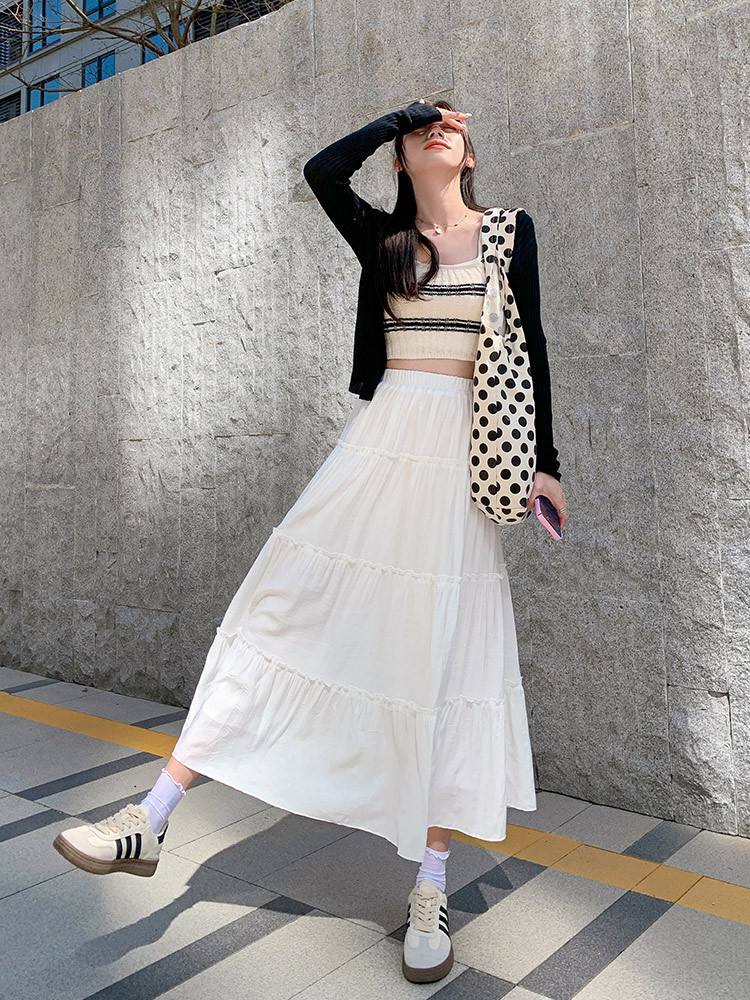 白色蛋糕裙女春夏新款高腰小个子气质仙女中长款a字半身裙