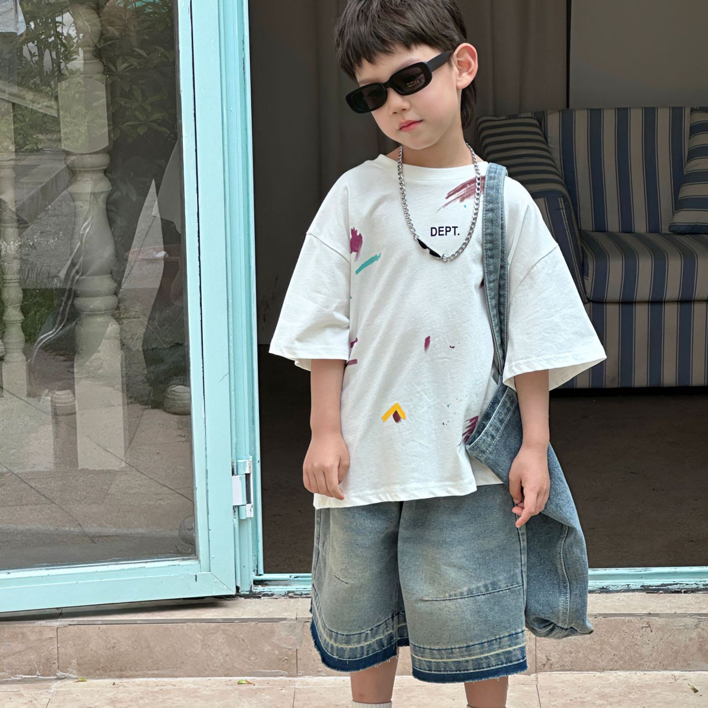 泰如夏季新款韩版男童时尚涂鸦设计感漆点短袖儿童T恤上衣潮