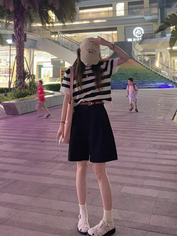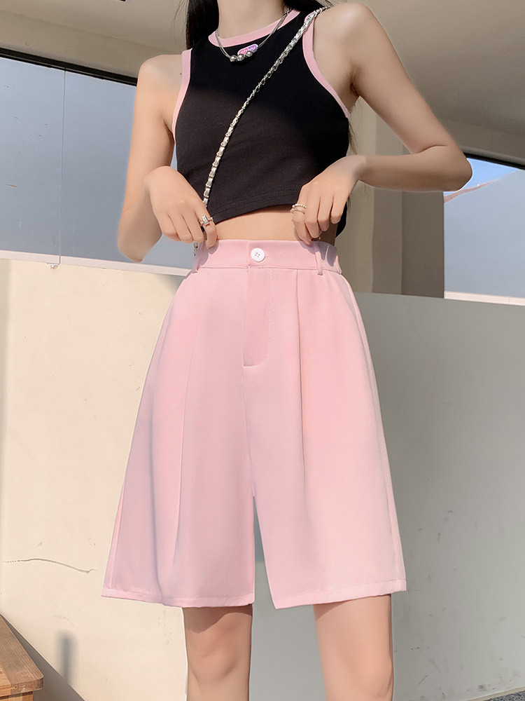 黑色西装短裤女夏薄款新款高腰宽松休闲小个子a字冰丝五分裤