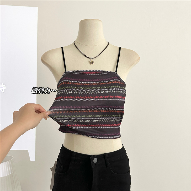 彩色条纹小吊带美背背心女夏季辣妹短款内搭外穿设计感带胸垫上衣