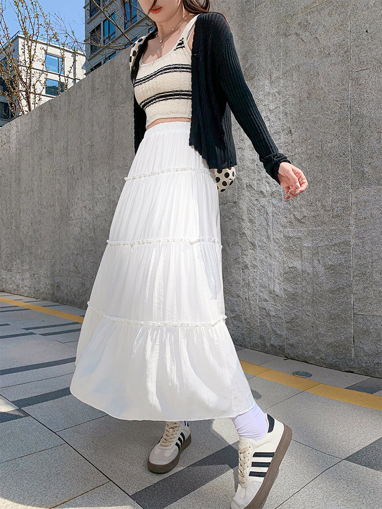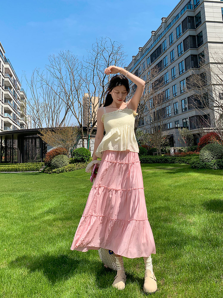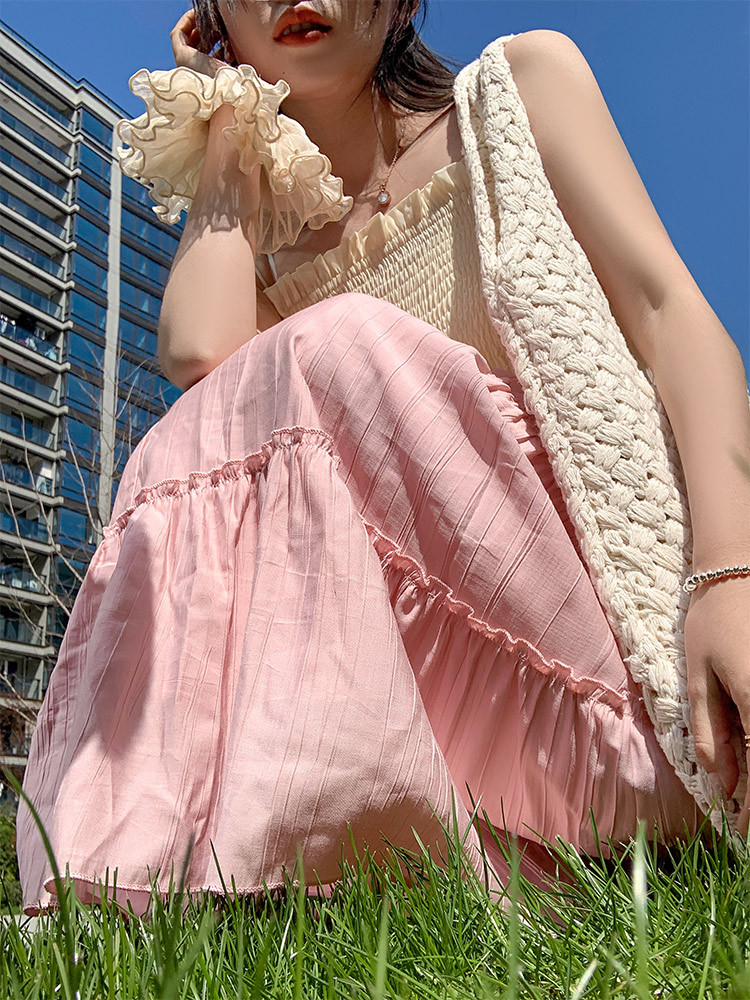 粉色密边半身裙女春夏新款腰气质仙女中长款蛋糕裙芭蕾风A字蓬蓬