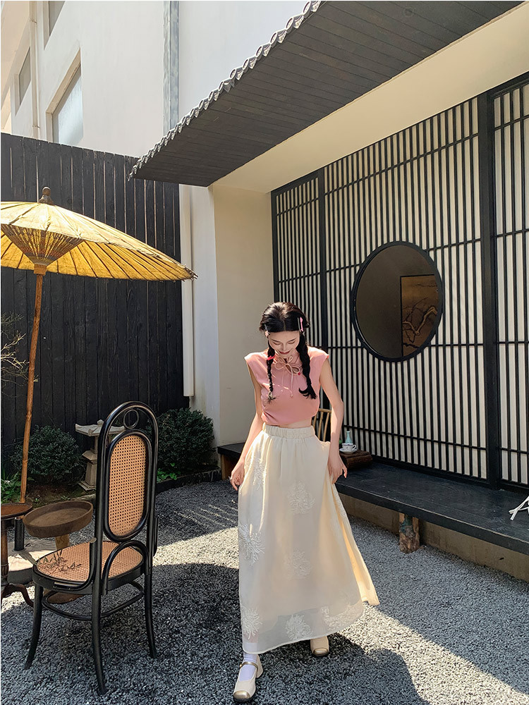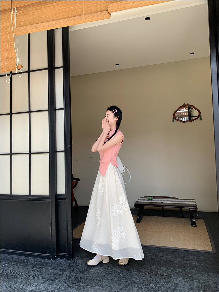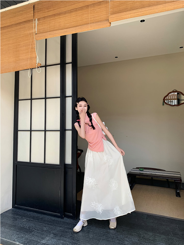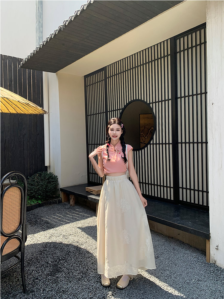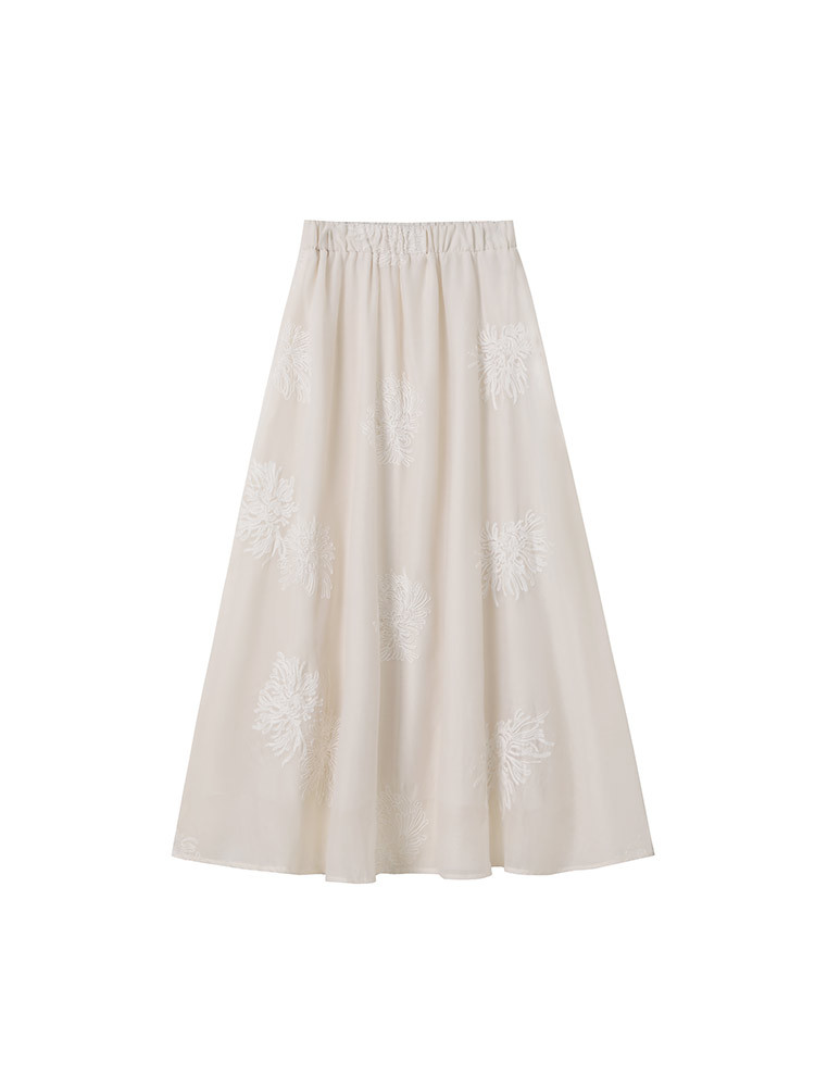 梓约新中式国风大花刺绣半身裙女春夏新款高腰A字裙