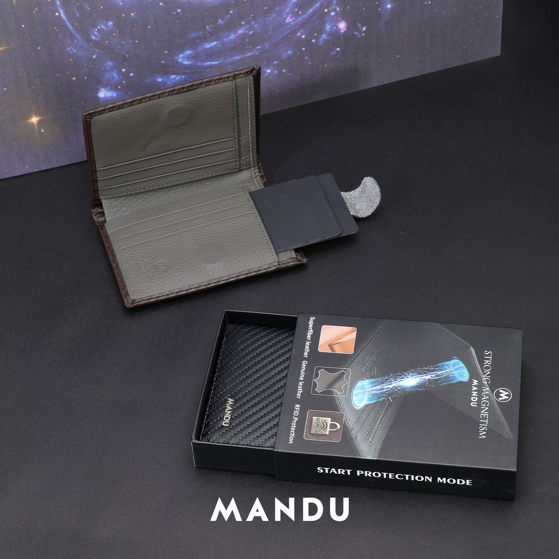 MANDU漫度新款真皮钱包男士碳纤维磁吸卡包大容量时尚零钱包