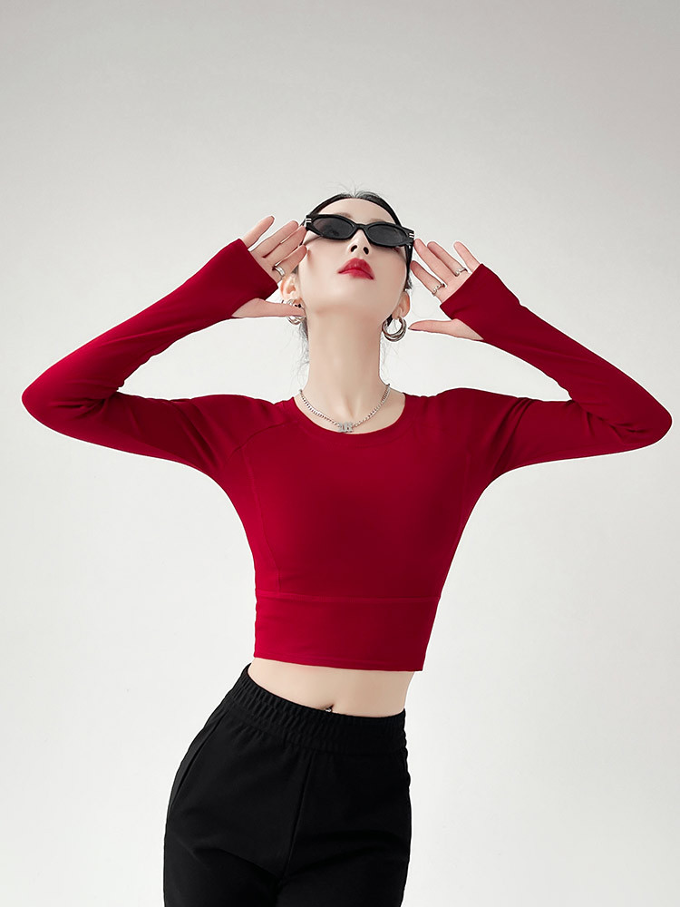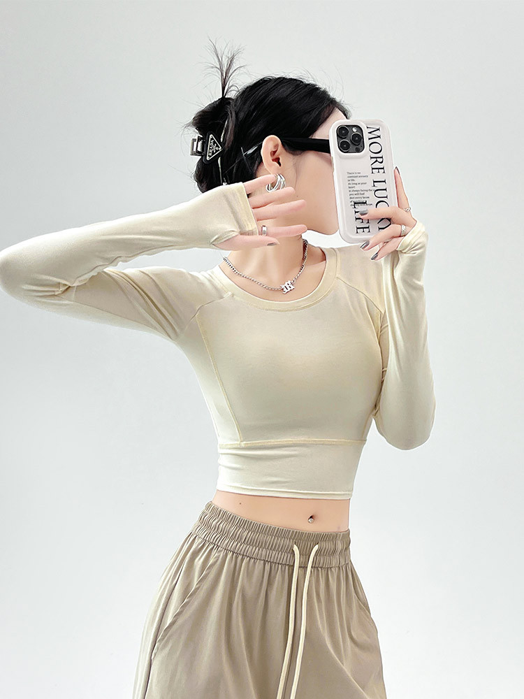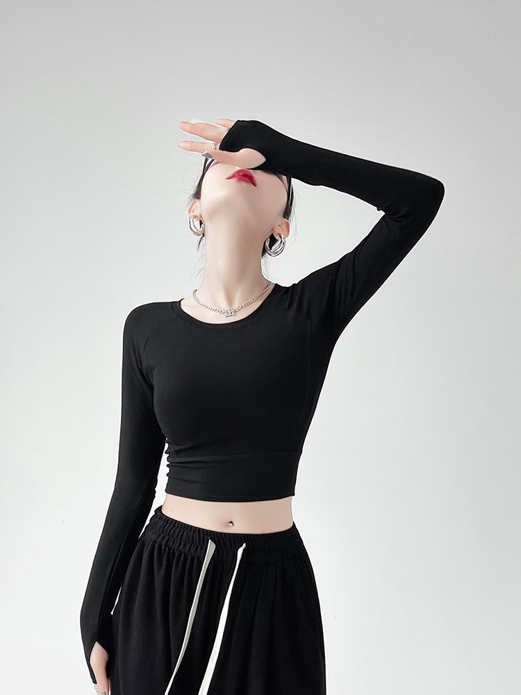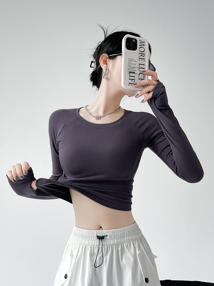 梓约短款修身长袖上衣打底衫新款春款性感T恤女显瘦健身衣