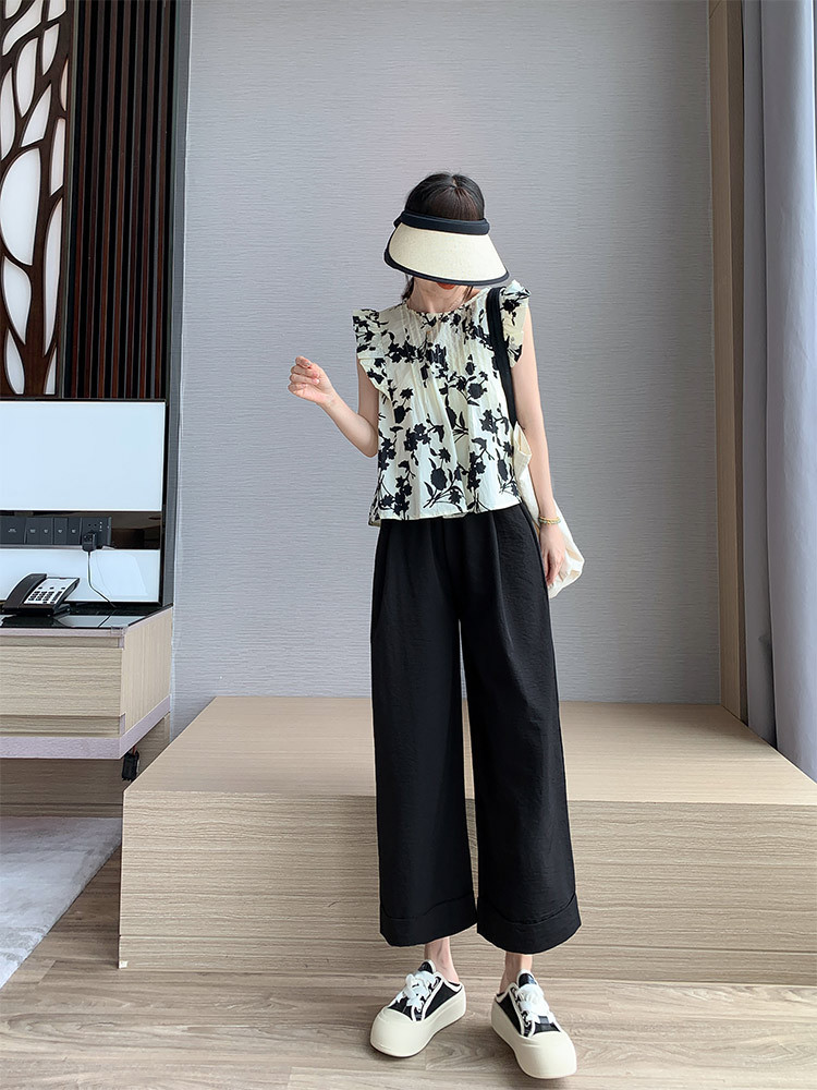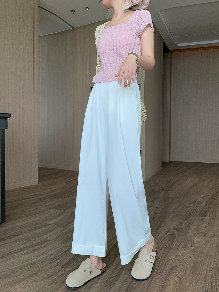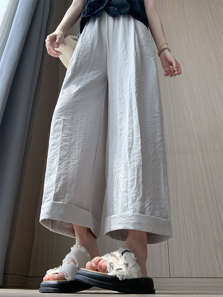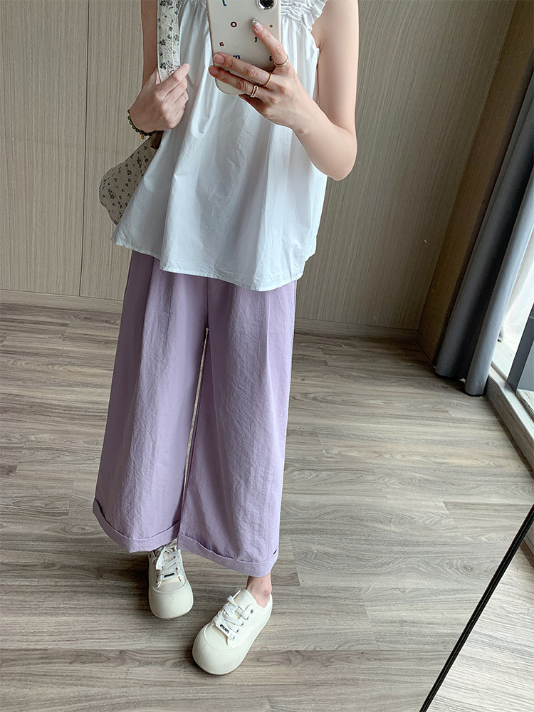 多巴胺女孩松紧腰休闲裤夏季新款九分裤宽松显瘦直筒长裤裤子