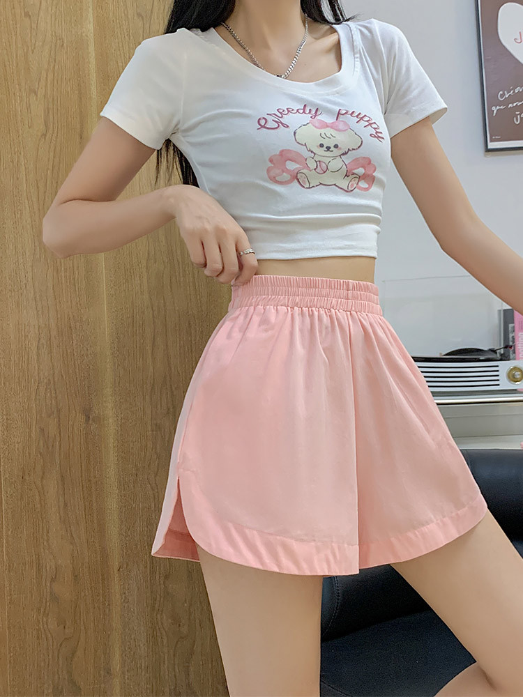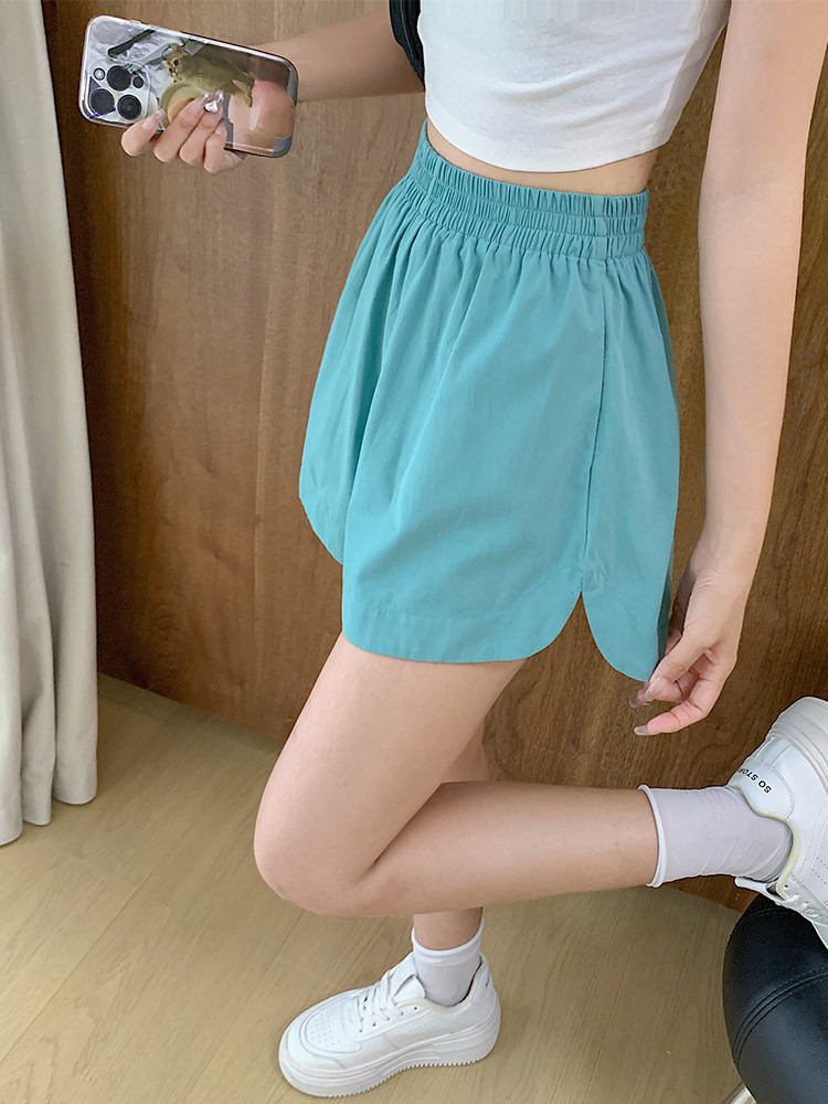 彩色高腰短裤女夏季新款薄款松紧腰宽松显瘦休闲A字阔腿裤